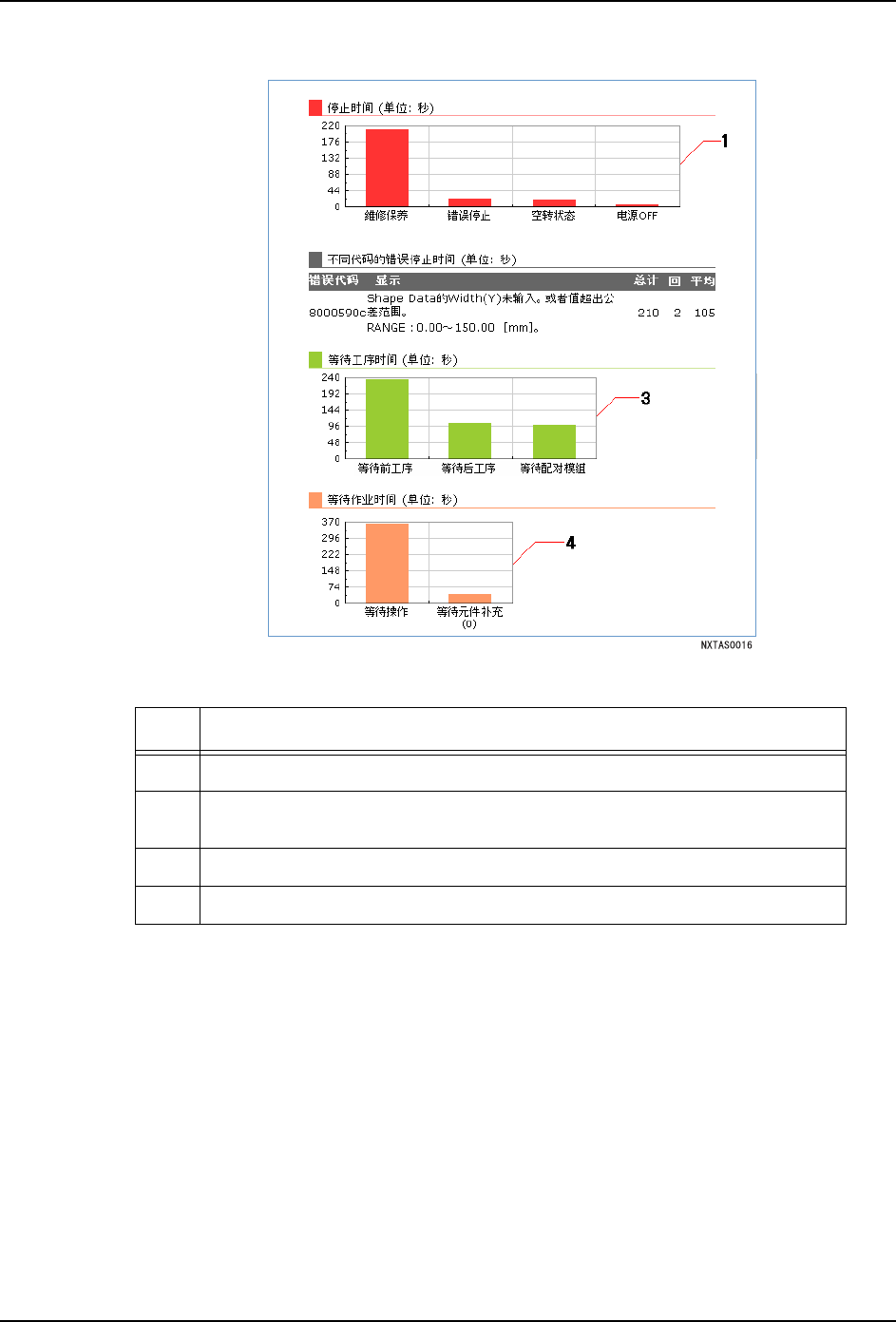 一览表中显示错误说明、合计停止时间、停止次数、以及平均停止时间。