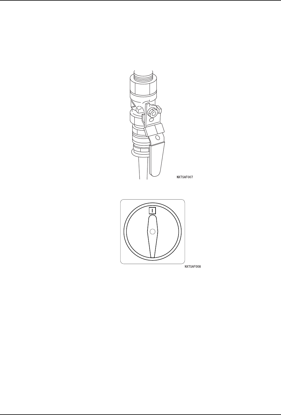 QD142-14 1. 安全指南 NXT II 系统手册 21 1.6.2 如何解除闭锁 操作结束时,操作人员需依次从 荷包锁上取下自己的标签。 所有的标签被取下后,按下面的 步骤解除闭锁。 1. 确认所有的操作人员已经离开机器。 2. 确认机器处在安全状态,然后打开荷包锁 将空气阀手柄旋转到 ON 位置。 3. 打开荷包锁将主开关旋转到 ON 位置。 4. 到此为止解除闭锁完成。
