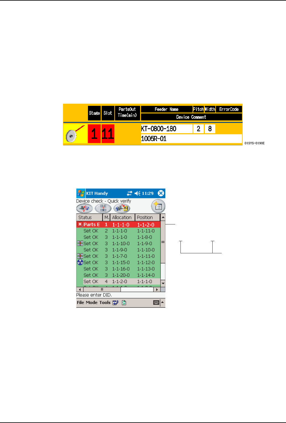 生产中将要发生的料尽能够在以下任一显示画面上进行确认。请根据 KIT Handy 的有无及 PC