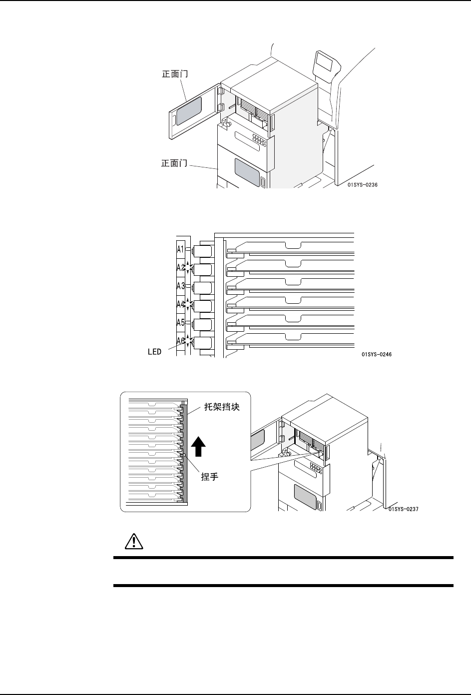 注意 )将料盘托架安装到料盘箱内时,在不产生冲击的情况下将料盘托架放入最里面。