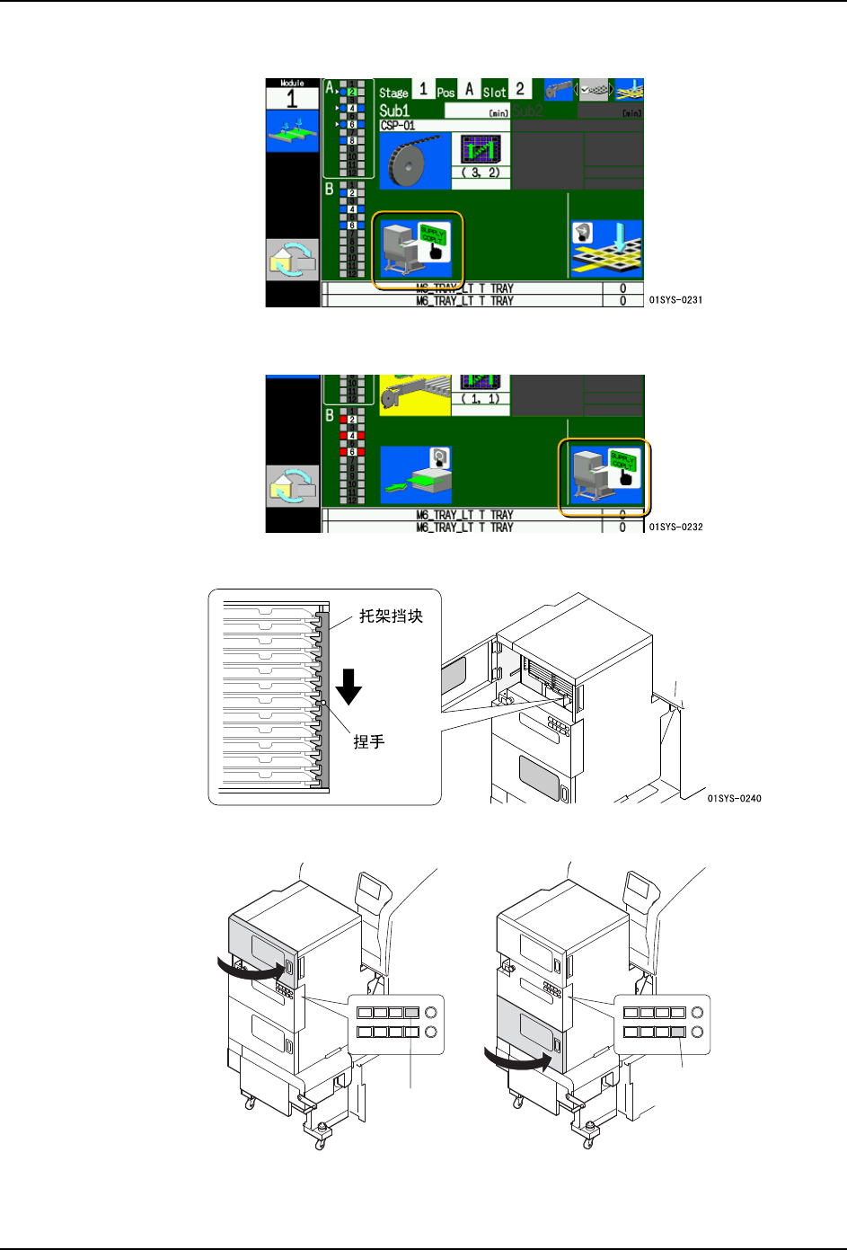 备注 )即使在托架档块处于下降状态时也可以半拉出料盘托架。此为便于操作员确认元件状