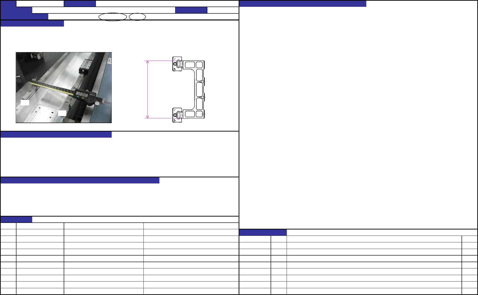 QA 表 机种 确认方法 1. 将带有千分表的磁力表架设置在下侧 LM 导轨的滑块上。 2. 使千分表触及上侧 LM 导轨之上面,在此状态下移动第 1 步设置好的滑块,确认全行程中平行度为 20μm 。 • 上侧 LM 导轨对下侧 LM 导轨的平行度: 20μm 调整方法 • 从下侧轨道基准面(下面)到上侧轨道基准面(上面)的距离: 137±0.1mm 2. 调整到 LM 导轨全行程中的平行度为 20μm 。 X坐标有关Y坐标位置的偏斜…