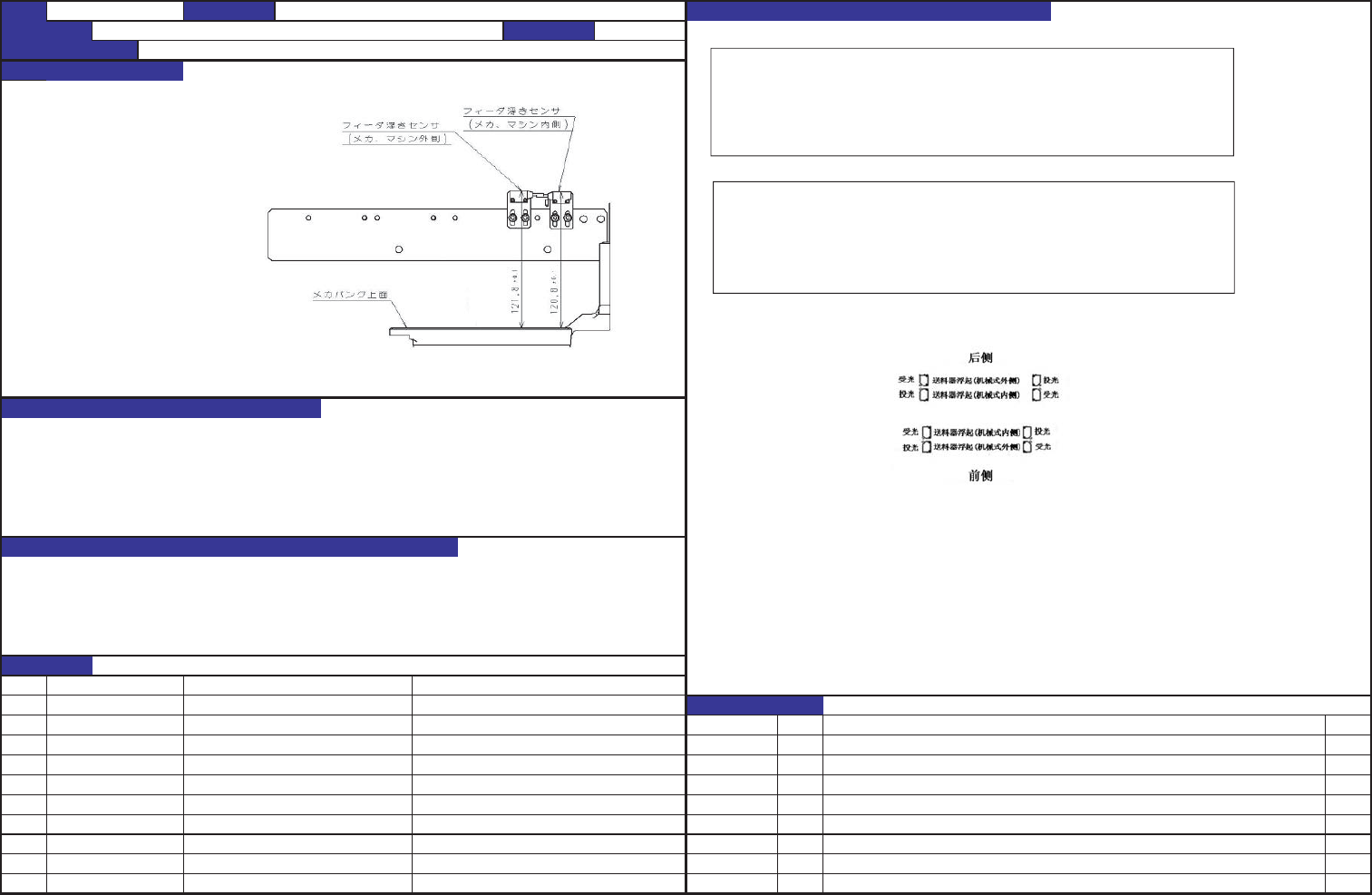 QA表 机种 焦点高度偏移量:±3.0mm以内 由于3D传感器的焦点位置是以玻璃面为基准的,故要取得3D传感器装置安装到贴片机之后的玻璃面高度的偏移量。 生产时Z轴移动量増加导致生产节拍下降。 NO ① ② NO. 担当人 ③ ④ ⑤ ⑥ ⑦ ⑧ ⑨ ⑩ 确认方法及调整方法(故障处理方法) 功能作用(规格调整值的意义) 预想故障(应规格调整值不良而发生的故障) 功能名称 3D传感器焦点偏移量 质量保证类别 功能 ・ 安全性 / 可靠性 …
