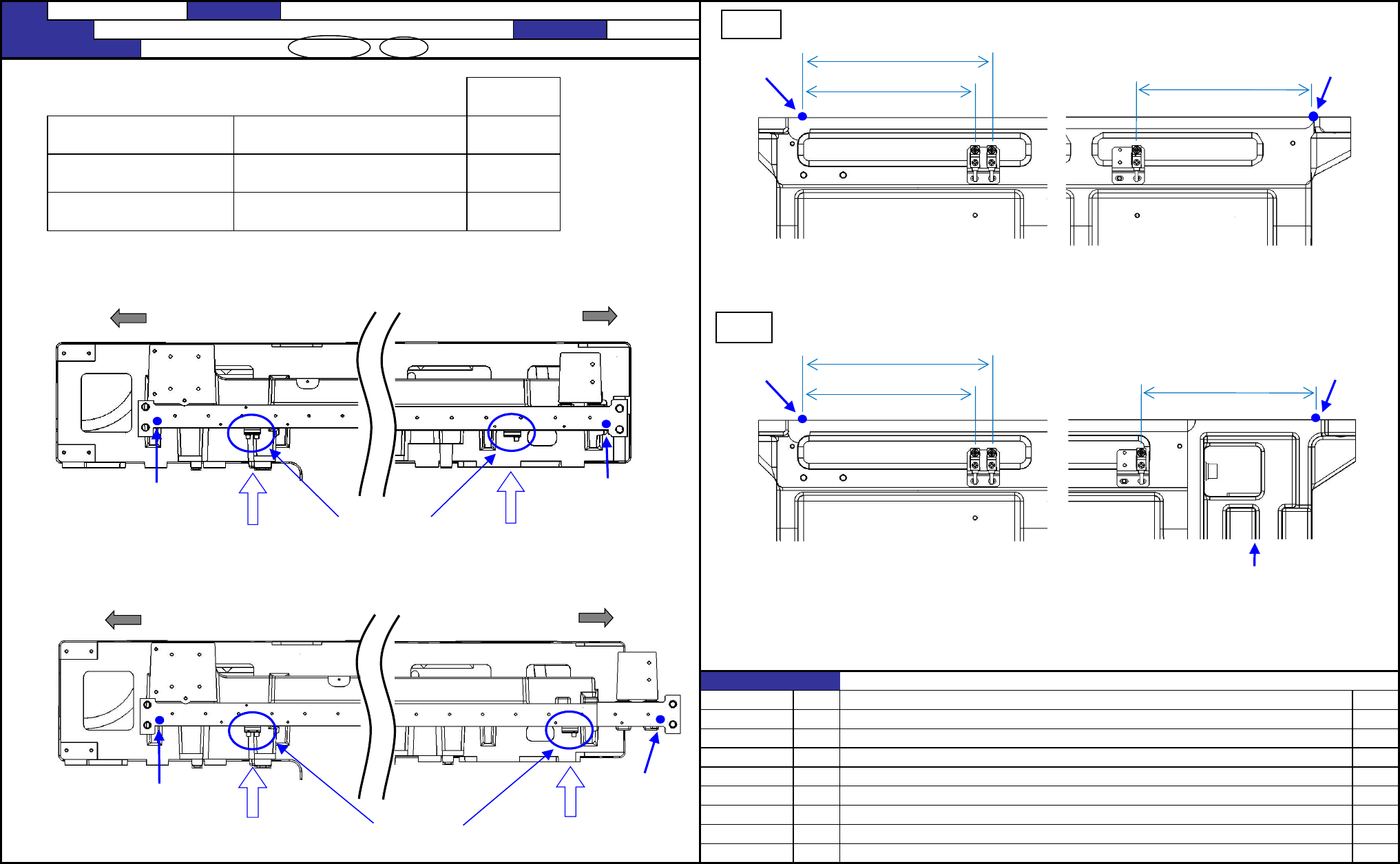 QA 表 机种 2. Y轴极限传感器位置 松开 Y 极限传感器托架的定位螺丝,使距开尾销中心位置的距离为图示的尺寸后固定。 NO. 担当人 M规格 L规格 2-1.前侧( Y 负极限传感器) 从开尾销中心位置到传感器中心的距离 162mm 2-2.前后侧( Y − − 极限传感器) 从开尾销中心位置到传感器中心的距离 177mm 2-3.里 (Y ++极限传感器 ) 从开尾销中心位置到传感器中心的距离 158.5mm 功能名称 极限传感…