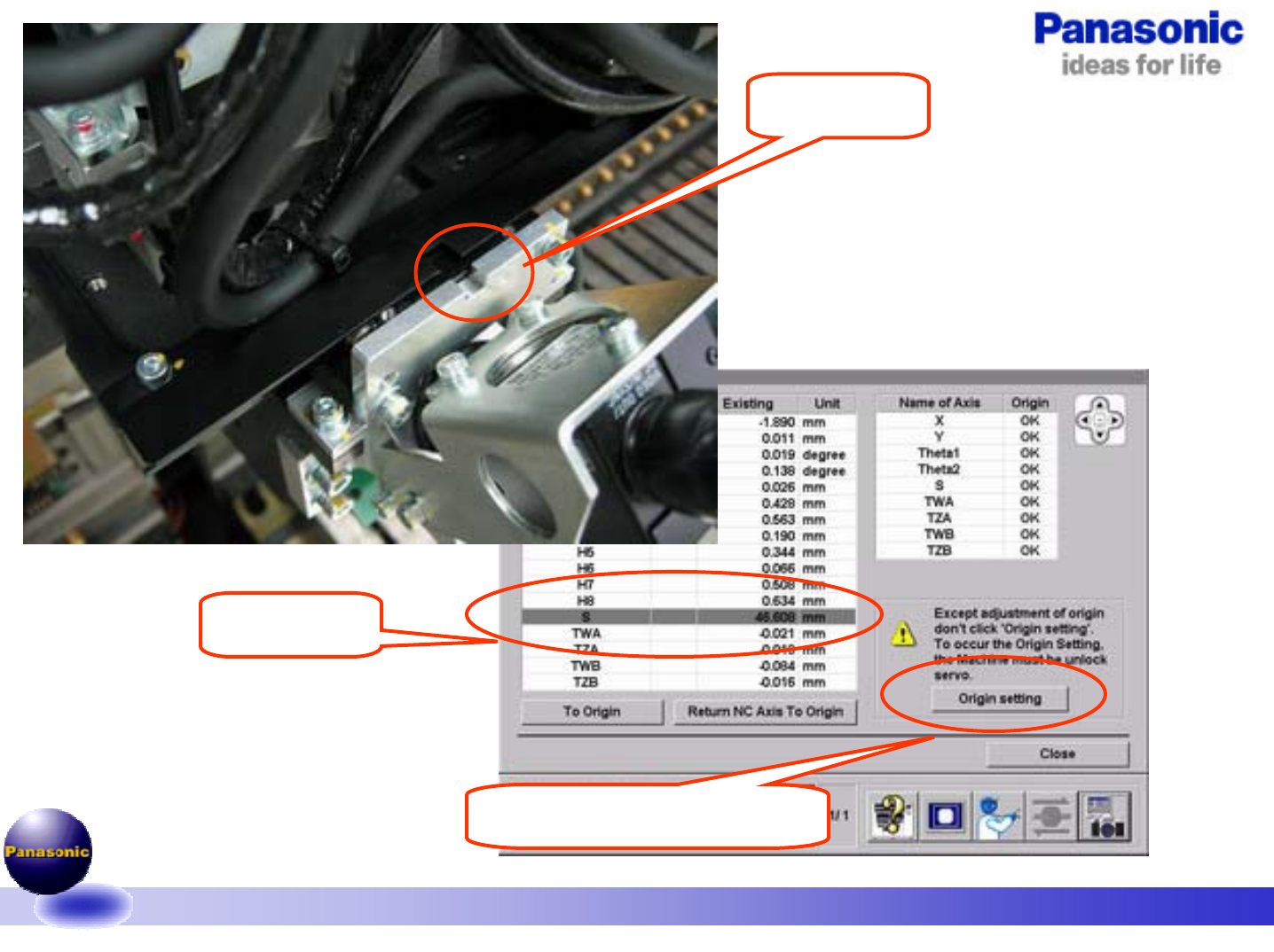 1.1-050805 21/49 点击 Origin setting 对齐凹槽 选中 S 轴