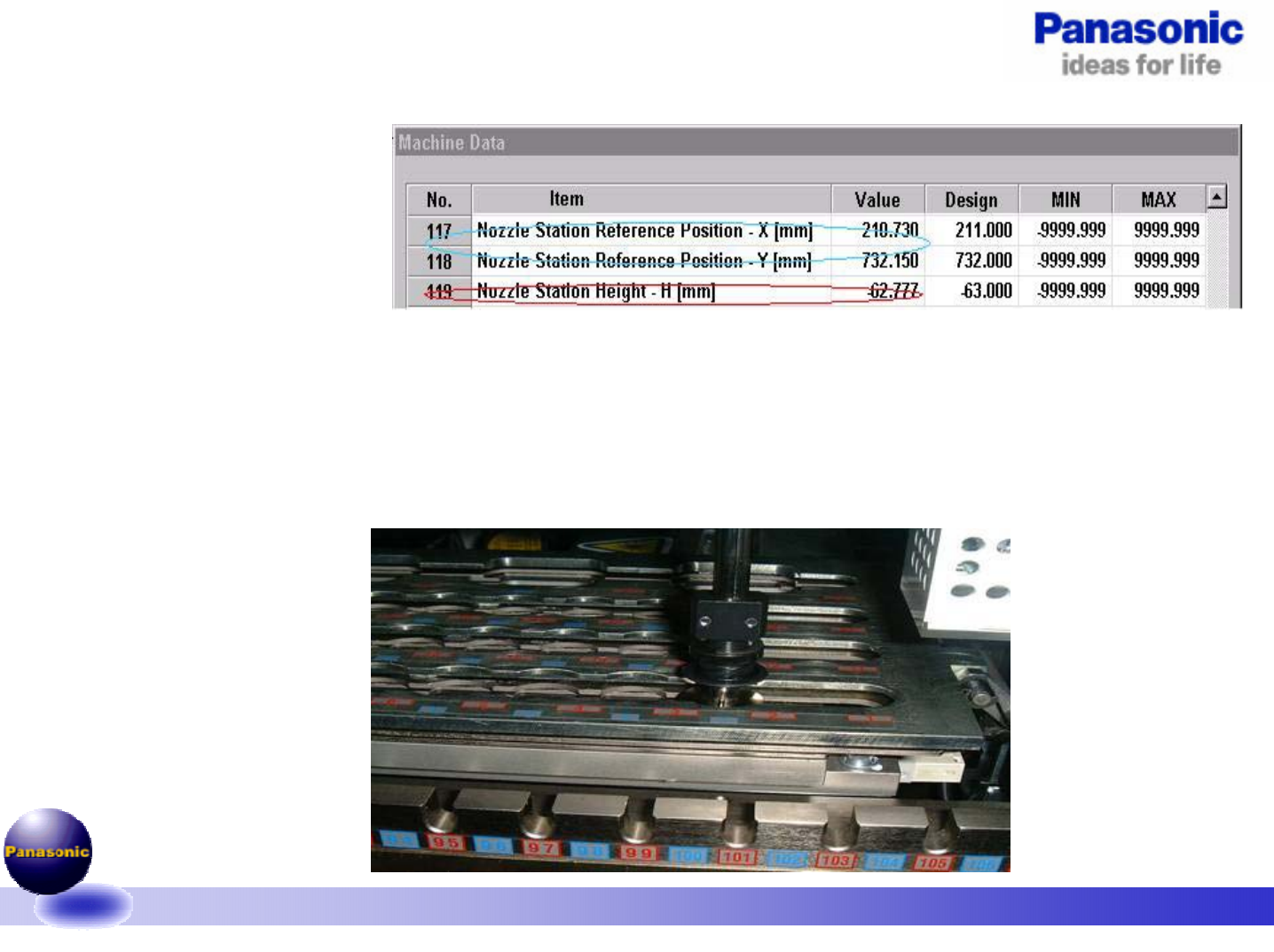 5.若不良,修改MACHINE DATA中的NOZZLE STATION REFERNCE POSITION的值