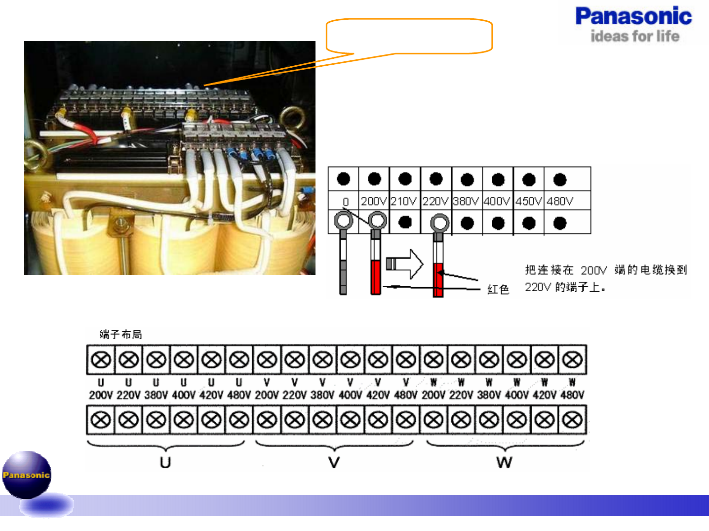 压为380V时,请在装机前将端子连