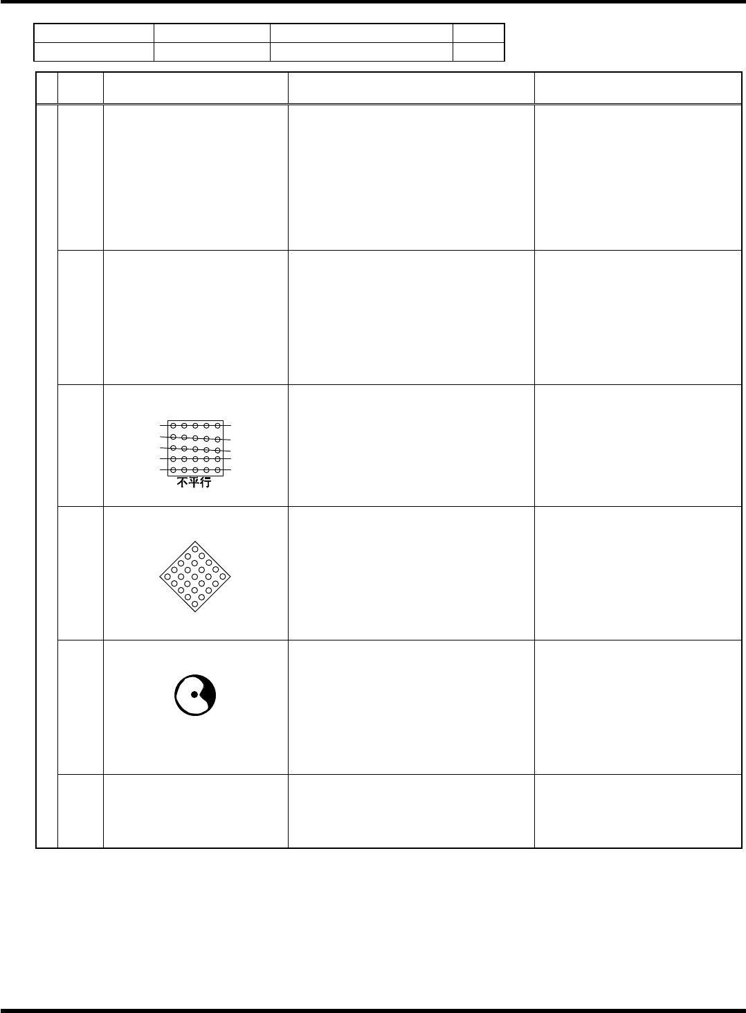 HGR14 附录 1.4 轮廓识别错误信息 附录 1-118 参考 No. 形状编号 类别 20 1 ~ 2 05 4 f BGA, C S P , ( µ BG A ) , L GA 等 1/3 代码 内容 原因 对策 1) 吸着错误·吸着异常 请确认吸着状态。 20 特征点数在规定外 1) 超出可识别范围 ( 式样 ± 30 [ ° ] 以内 ) 请确认吸着状态。 21 43 吸着角度异常 2) 吸着异常 请确认式样角度。 1) L…