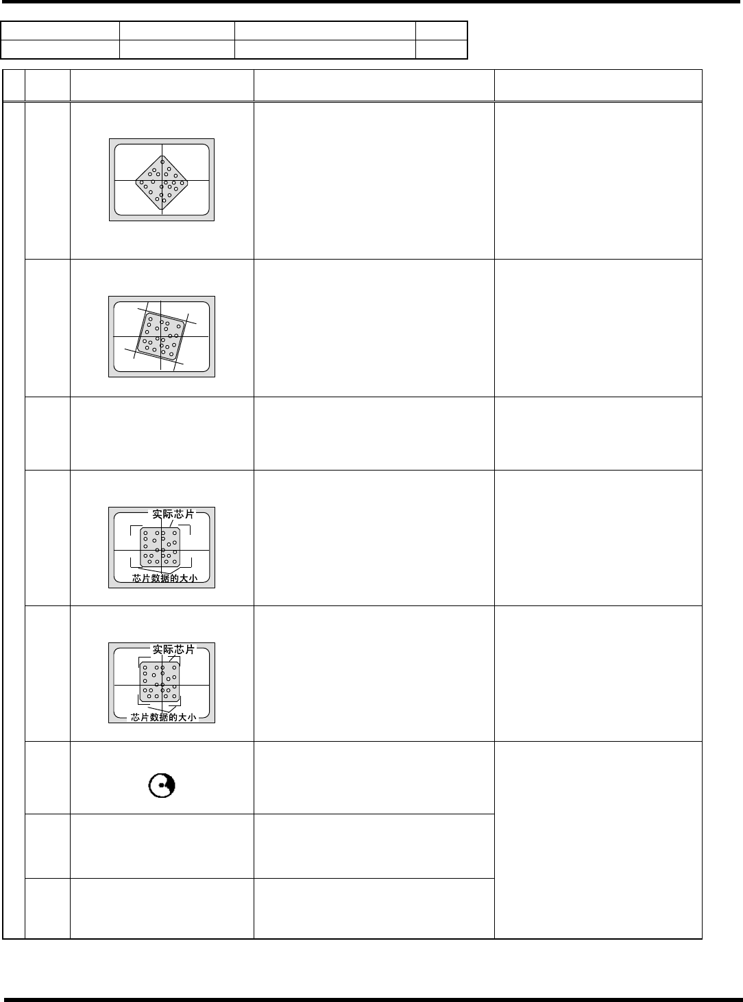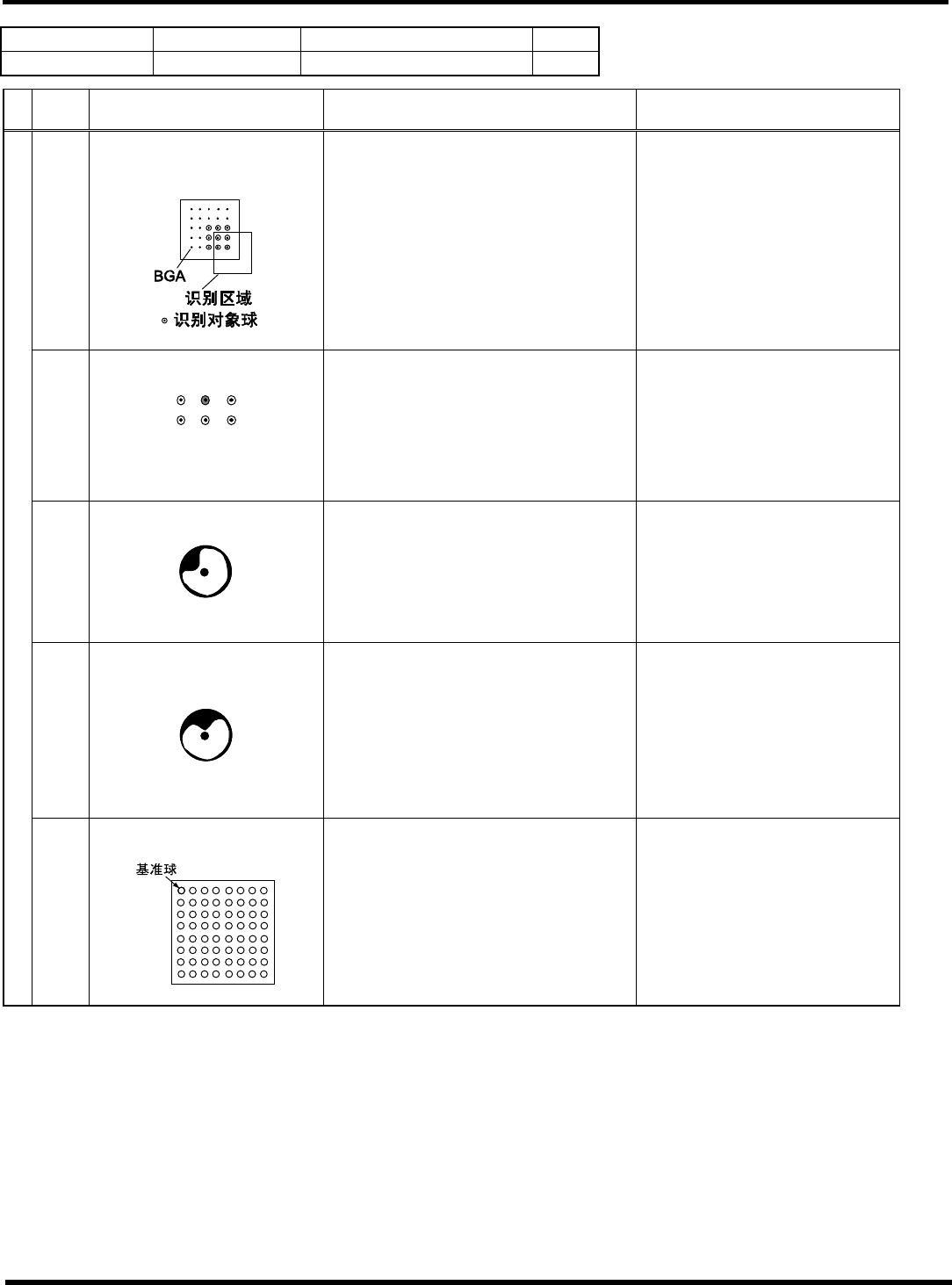 HGR14 附录 1.4 轮廓识别错误信息 附录 1-1 21 参考 No. 形状编号 类别 22 2 4i 倒装芯片等 1/1 代码 内容 原因 对策 20 球检测个数异常 1) 检测的球数没有达到芯片数据所指 定的数量。 请正确设定球图形。 (BGA 扩展数 据 ) 1) 检测的球位置超出芯片数据所指定 的偏离容许范围内 请正确设定球位置。 (FC 扩展数据 ) 35 球检测位置异常 请确认对象部品。 1) 识别角度超出容许范围 ±…