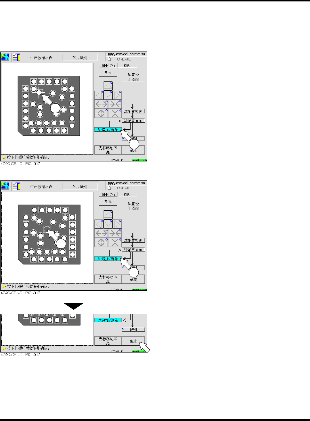 做完上述作业,示教作业则完成。但,在焊锡球的自动抽出时如果有不能检测的焊锡球,请按照