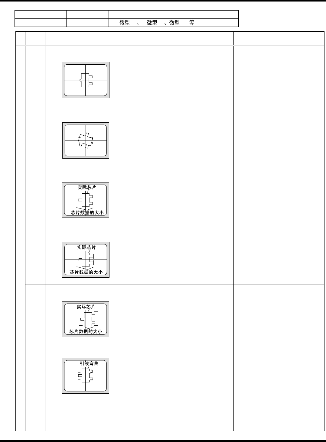 HGR14 附录 1.4 轮廓识别错误信息 附录 1-90 参考 No. 形状编号 类别 59 ~ 60 1b, 1e 柱形电阻、圆筒电容器 等 1/1 代码 内容 原因 对策 1) 吸着错误、吸着异常 ( 错误画面上只看见吸嘴的轮廓 ) 请确认部品高度 、 吸着位置 、 吸着 偏移量、 使用 吸嘴使吸着状 态更趋 稳定。 2) 参考编号错误 确认芯片数据 20 (20) 特征点数在规定外 < 错误画面 > [ 规定值 ] …