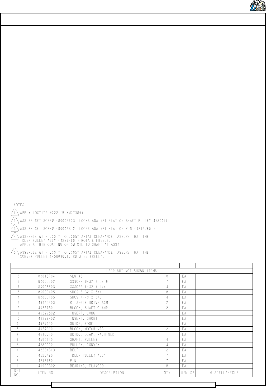 Page 3 Beam Assembl y T46217601 Rev .C TECHNICAL PUBLICATIONS This Document Supports Assembly 46217601 Rev. C 3 SEC TION A-A SEC TION B-B IDLER PULLEY ASSY 3 MM SIDE OF I NSERTS 1 4 2 1 4 CONVEX PULLEY