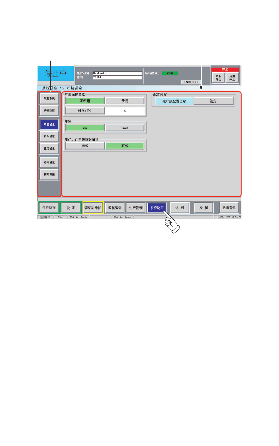 按主菜单栏的 [ 系统设定 ] 按钮 , 显示“系统设定”菜单栏和做为初