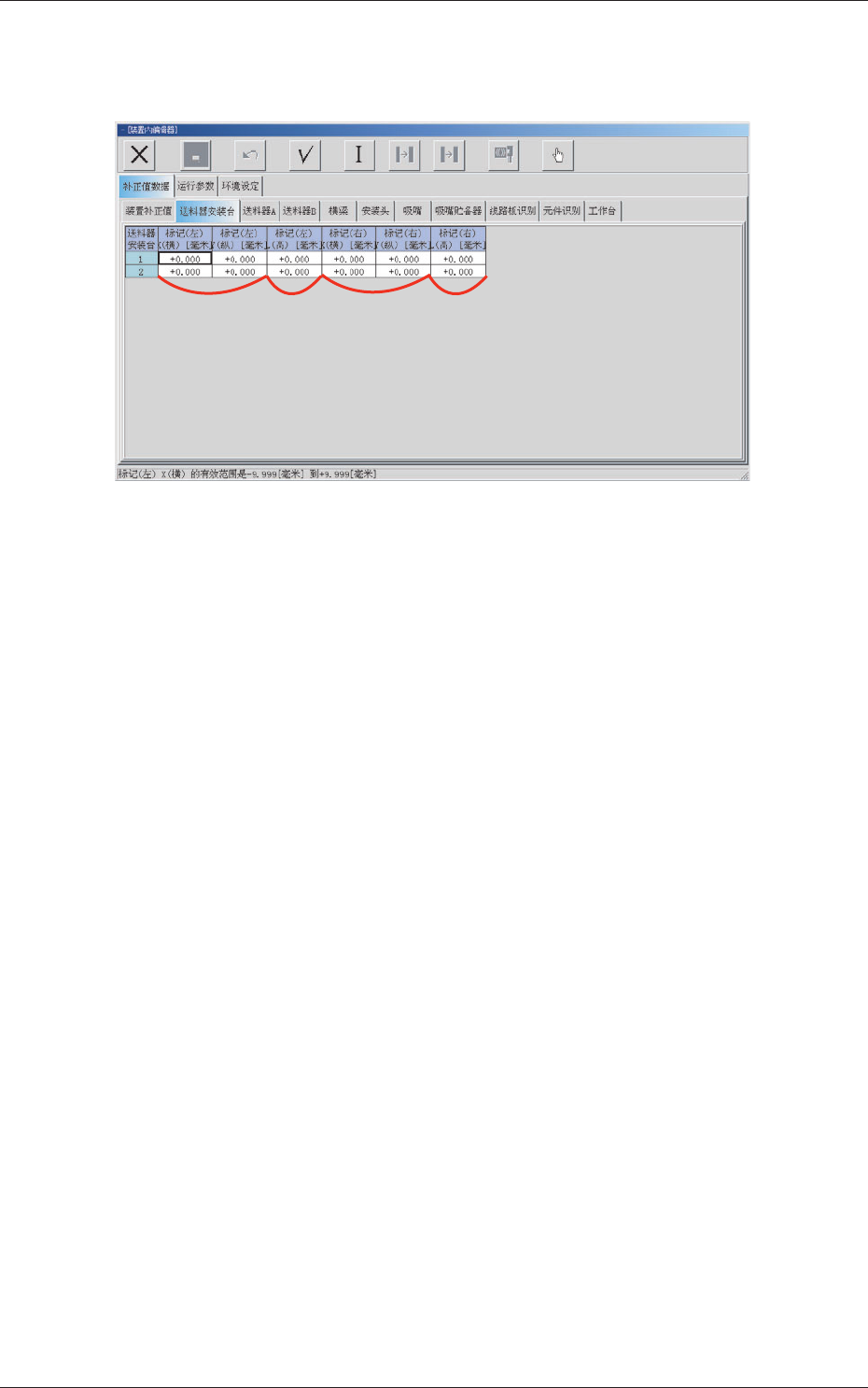 标记 ( 中 ) 是移动安装头旋转中心到元件识别照相机上时,用线