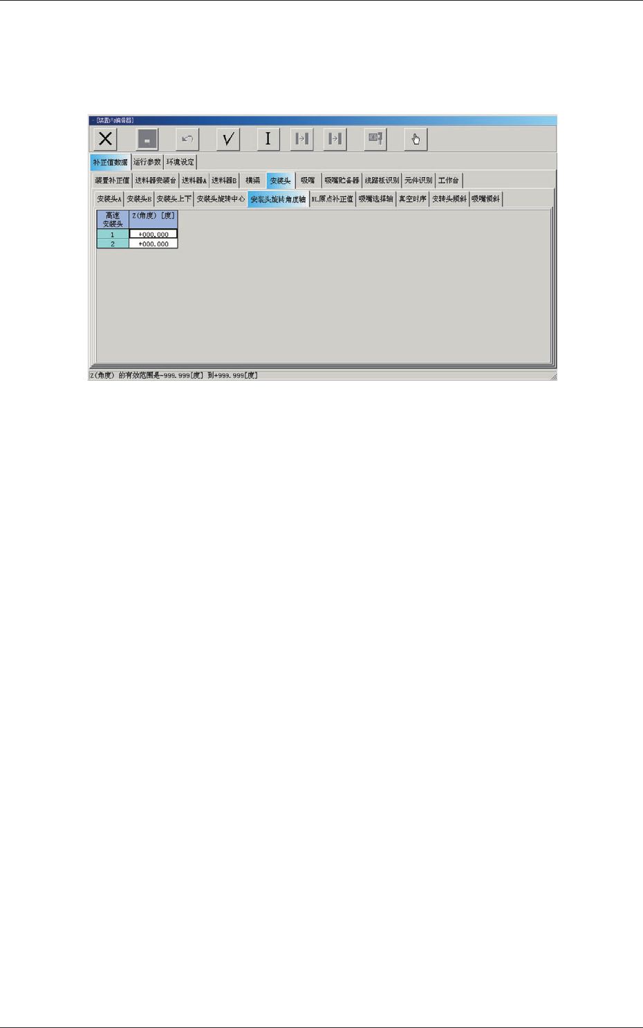 “补正值数据”选项卡中, [ 安装头 ]Tab,再按[安装头旋转角度轴]