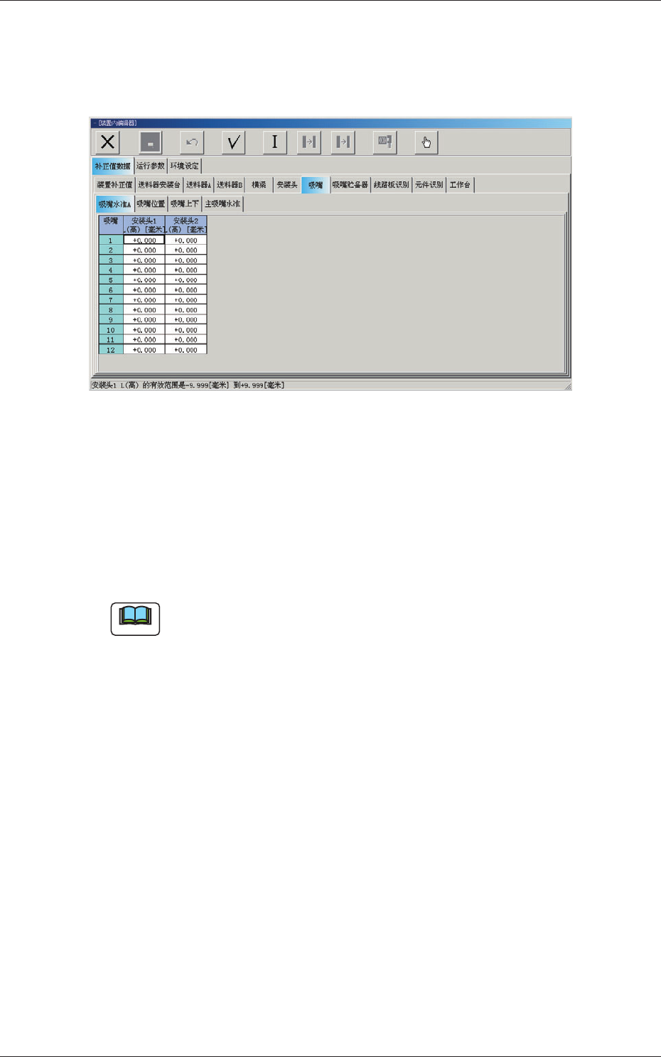 在“补正值数据”选项卡中,按[吸嘴]Tab,再按 [ 吸嘴水准 A]Tab,