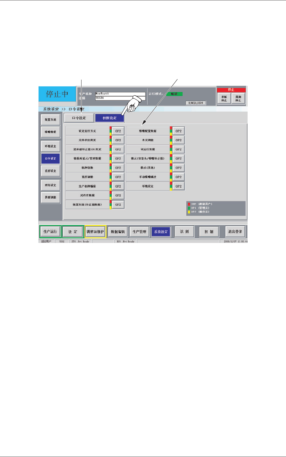 (1) 取消所设定的口令时,按下相应的用户权限按钮,显示“输入