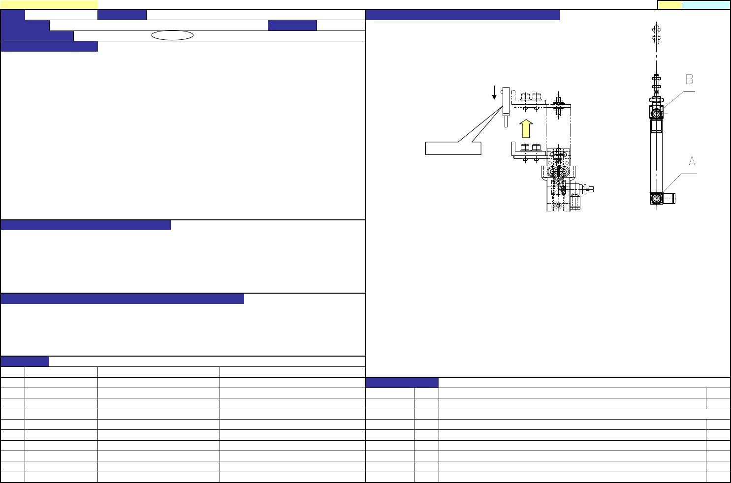 QA表 NO. 机种 1-1.速度控制调整时,线全部拧仅螺丝,返回指定转动。 调整后用螺母固定。 1.速度控制打开度: A侧(安装在气缸)从全闭打开2圈。 1-2. B侧的速度控制器调整, B侧 从电磁阀ON信号到夹具探头ON(制动器动作完成)的时间为170ms±10ms。 使止动器处于上升状态,由上而下移动夹具传感器, 2.止动板的动作应顺畅。 在从传感器打开的位置开始往下 再移1mm的位置进行设置, 在此状态下进行测量。 2.ON/…