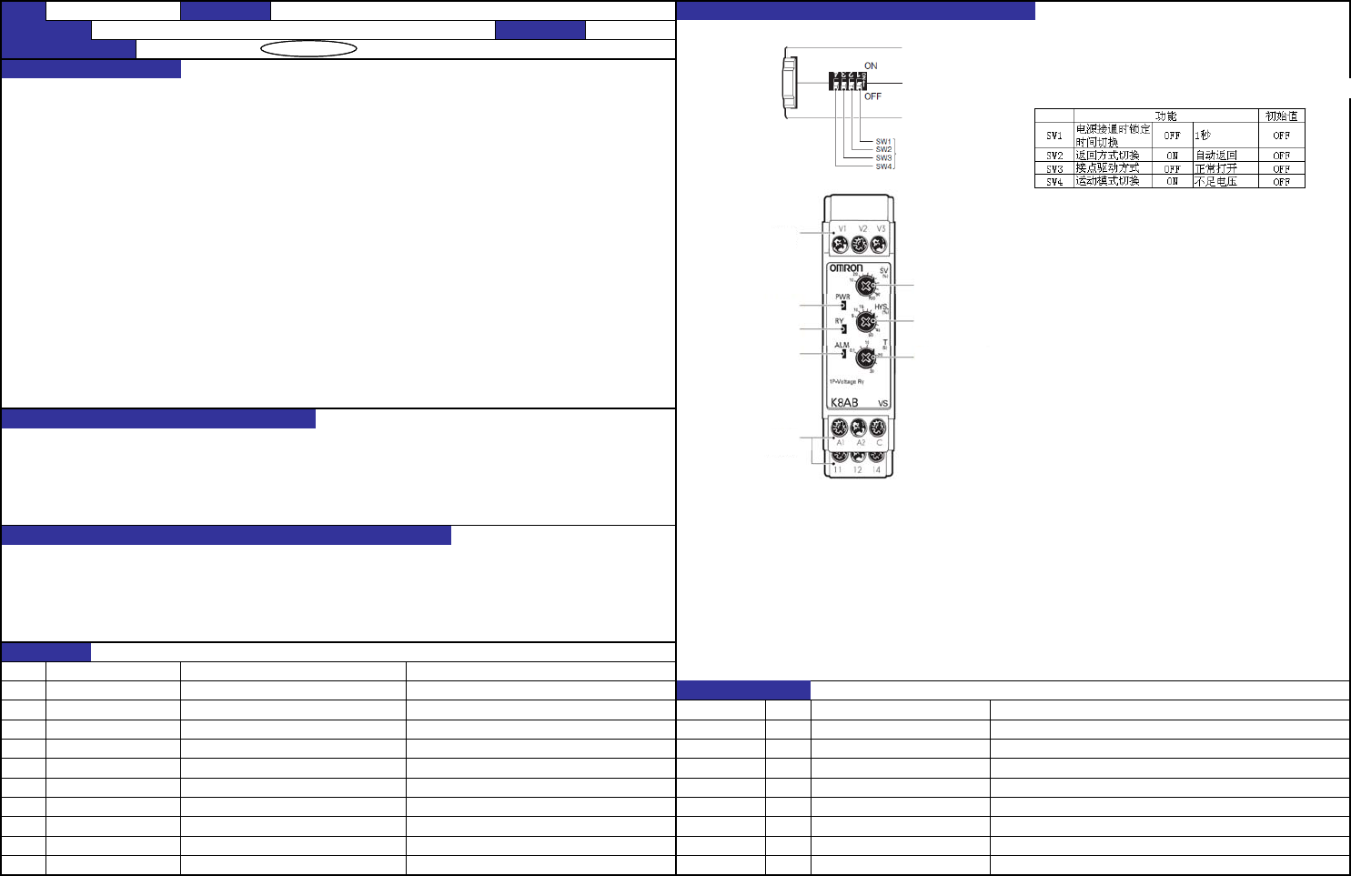 动作模式切换(SW4) :关(AL2:不足电压) SW2 返回方式切换 ON 自动返回