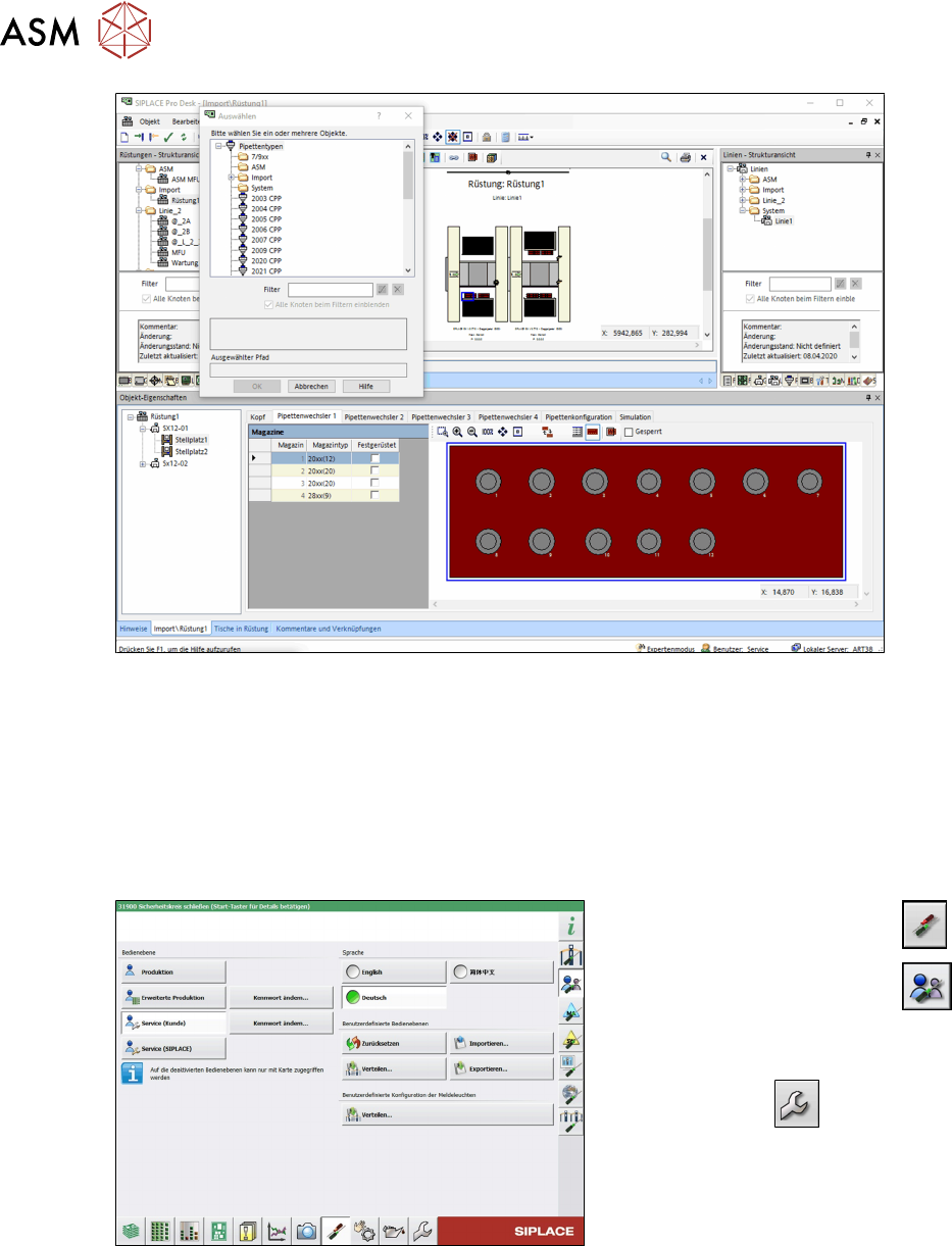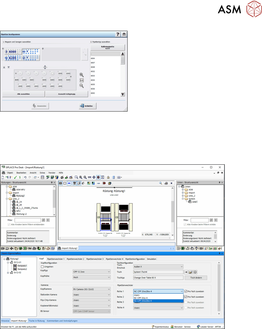 ► Konfigurieren Sie den Pipettenwechsler in der Rüstung in SIPLACE Pro.