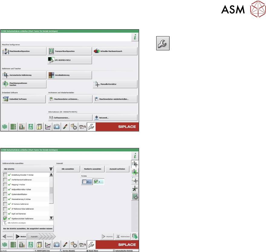Je nach Fertigungskonzept können Sie hier die Pipettenwechsler Konfiguration manuell durchfüh-