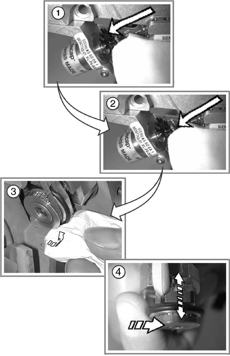 ① 마른 보푸라기 없는 천으로 3 개의 밸브 조정 드라이브를 닦습니다 .