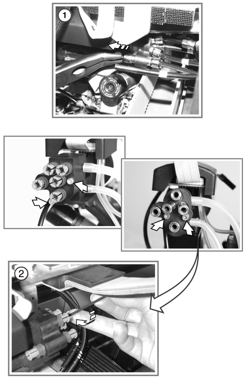 ③ 에틸 알코올을 적신 보푸라기 없는 천으로 회전 스테이션의 검은색 O-ring 을 닦습니다 .