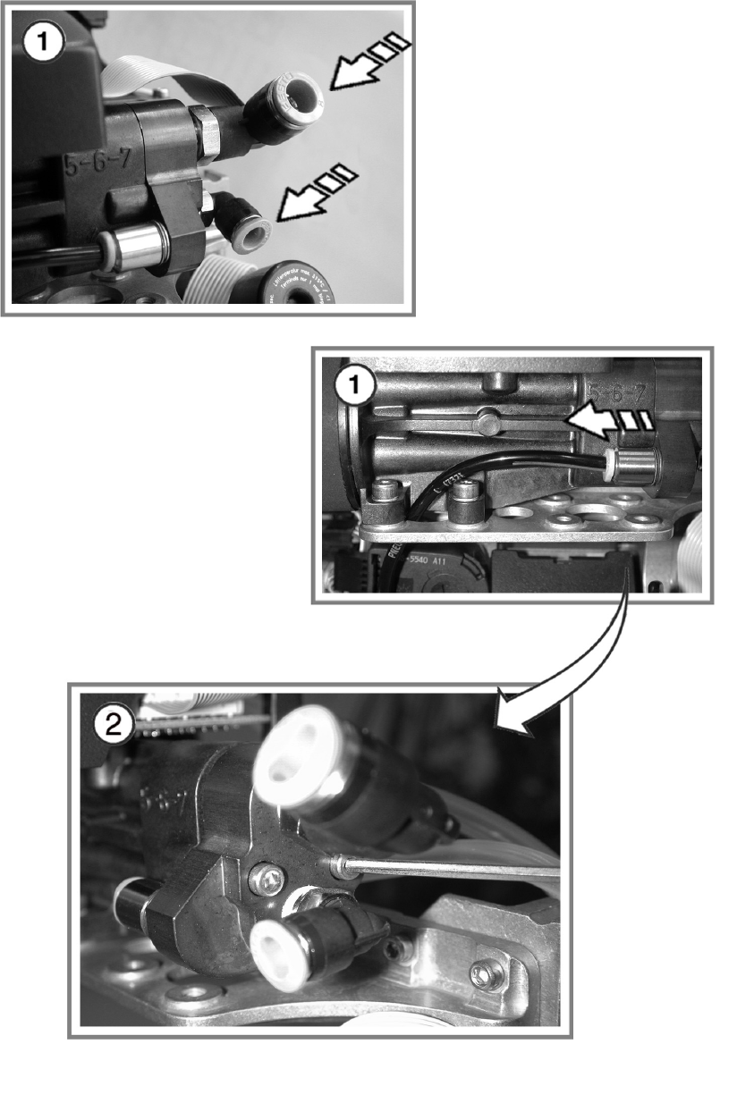 ① 진공 발생기 호스를 분리합니다 .