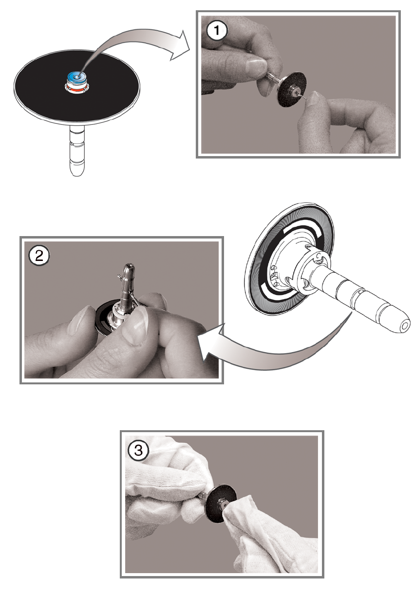 ③ 마른 보푸라기 없는 천으로 슬리브 흡입판을 청소합니다 .