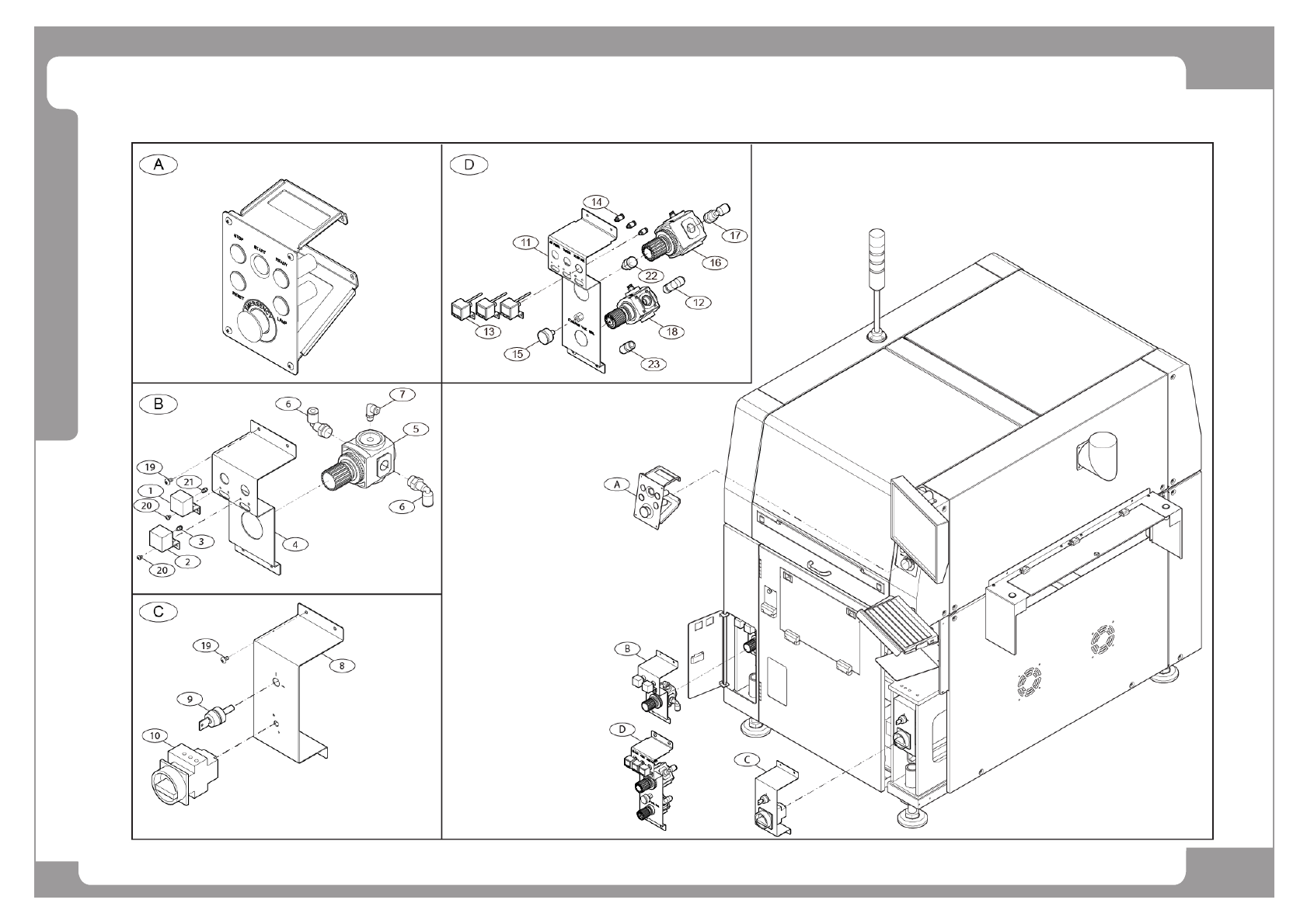 Page SAMSUNG TECHWIN 163 SP1 Function Panal Ass’y (Front) NO. P ART NO . P ART NAME Q'TY Old No. Stoc k Apply Reference A AM03-005771C CABLE ASSYSP1_FRONT_OP_P ANEL_C 1 B J9065177 0A SP1_AIR_P ANNEL_ASSY J906 51770A…