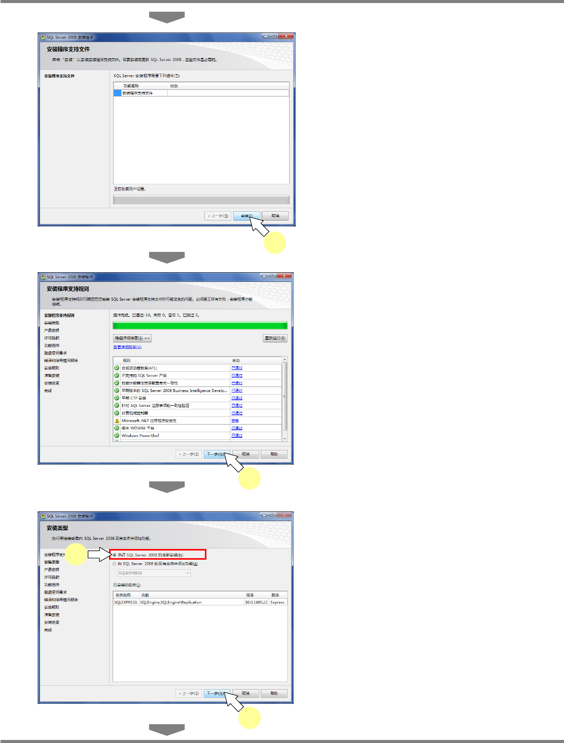 NPM / AM LNB 2.7 品质信息数据库的安装 Page 2-76 EJM5DC-MB-02L-0 3 2. SQL Server Management Studio Express 的安装 1 启动 ‘SQL Server Management Studio Express’ 的安装程序。 2 点击菜单 [ 安装 ] 的 [ 全新 SQL Server 独立安装或向现有安装添加功能 ] 。 3 环境的自动确认完成后,点击 [O…