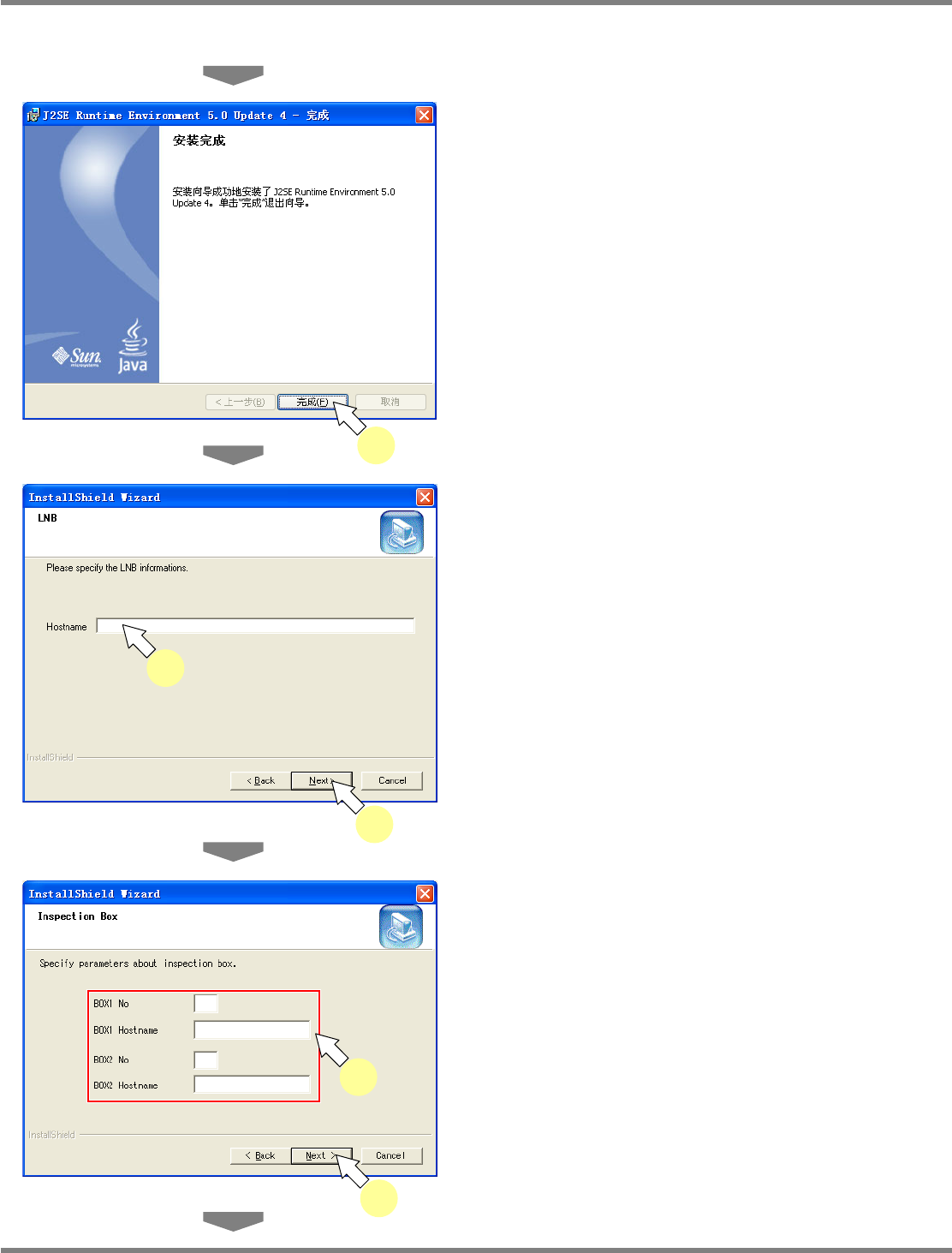 NPM / AM LNB 2.7 品质信息数据库的安装 EJM5DC-MB-02L-0 3 Page 2-87 9 在 ‘ 我接受该许可证协议中的条款 ’ 项 目上打勾后,点击 [ 下一步 ] 。 将显示选择安装类型的画面。 10 在 ‘ 标准 ’ 项目上打勾后,点击 [ 下一步 ] 。 将开始 JAVA2 Runtime 的安装。 2-5065 9 9 2-5066 10 10 2-5067