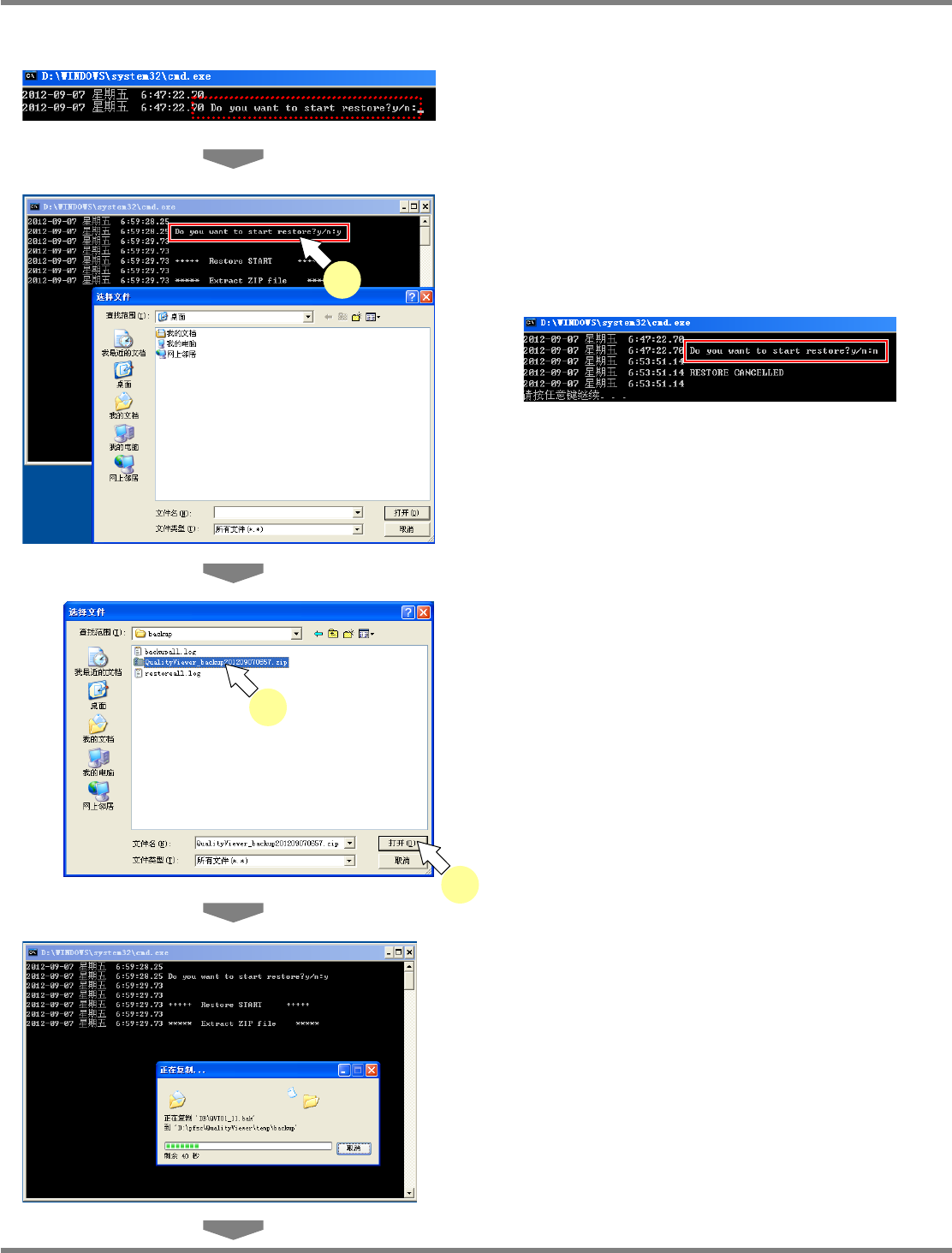 NPM / AM LNB 2.7 品质信息数据库的安装 Page 2-102 EJM5DC-MB-02L-0 3 2. 还原的实施 1 在还原的执行画面上,将显示 ‘Do you want to start restore?y/n’ 的确认信 息。 2 输入 ‘y’ 后,按 [Enter] 键。 将显示选择文件的画面。 输入 ‘n’ 后,按 [Enter] 键,可取消还原处理。 3 选择备份文件后,单击 [ 打开 ] 。 备…