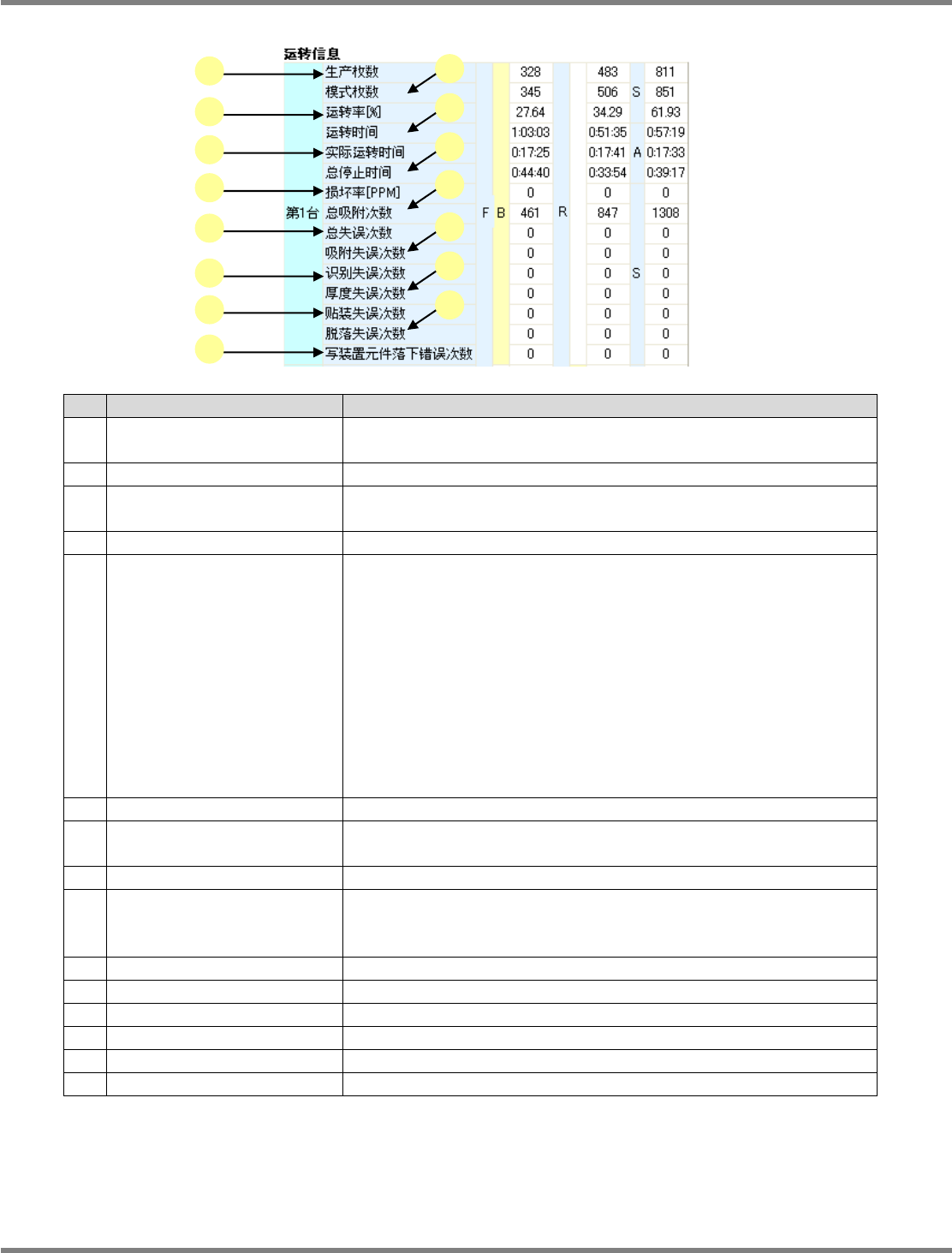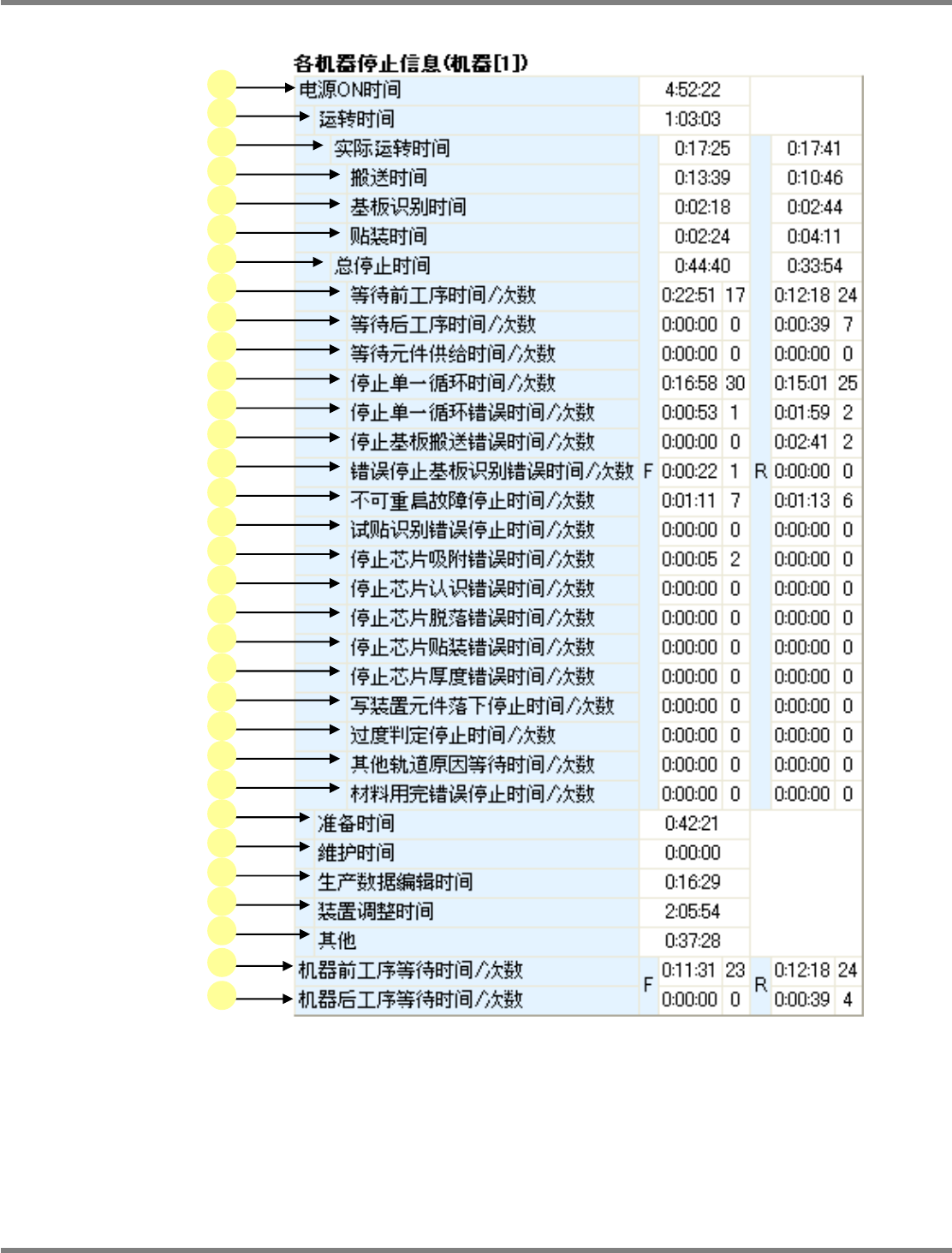 由于贴装错误而处于停止状态的时间及其次数。