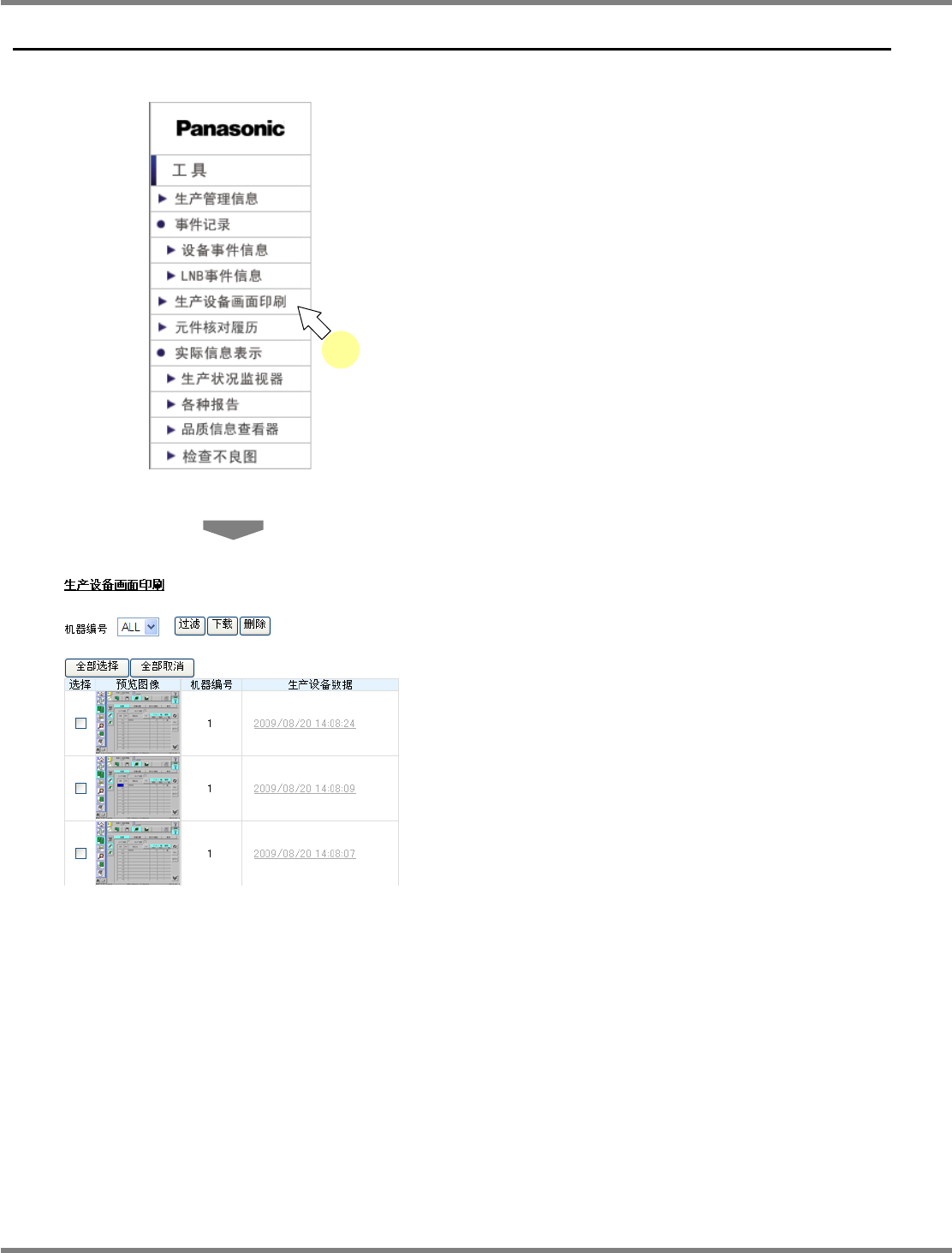 显示出所选择的生产设备画面数据。