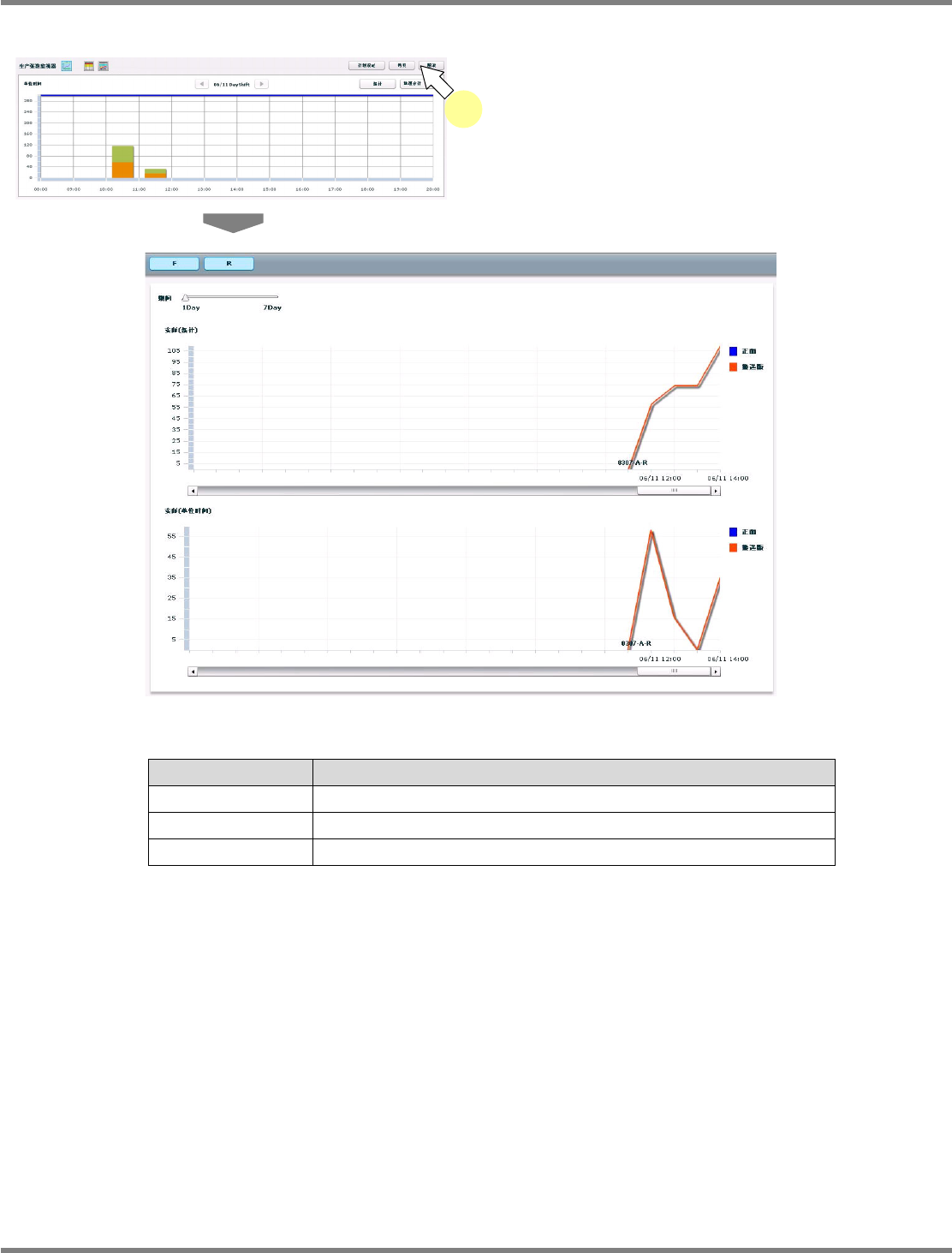 NPM / AM LNB 3.5 实际信息表示 Page 3-42 EJM5DC-MB-03L-04 B) 生产张数图表 ( 每个批量 ) 1 在生产信息上点击 [ 图表 ] 。 将显示生产张数图表。 在生产张数图表 ( 每个批量 ) 中,显示下述信息。 信息 说明 期间 通过选择期间,可最多显示 7 天的数据。 实绩 ( 累计 ) 显示每个批量的生产实绩 ( 累计 ) 。 实绩 ( 单位时间 ) 显示每个批量的生产实绩 ( 单位时…