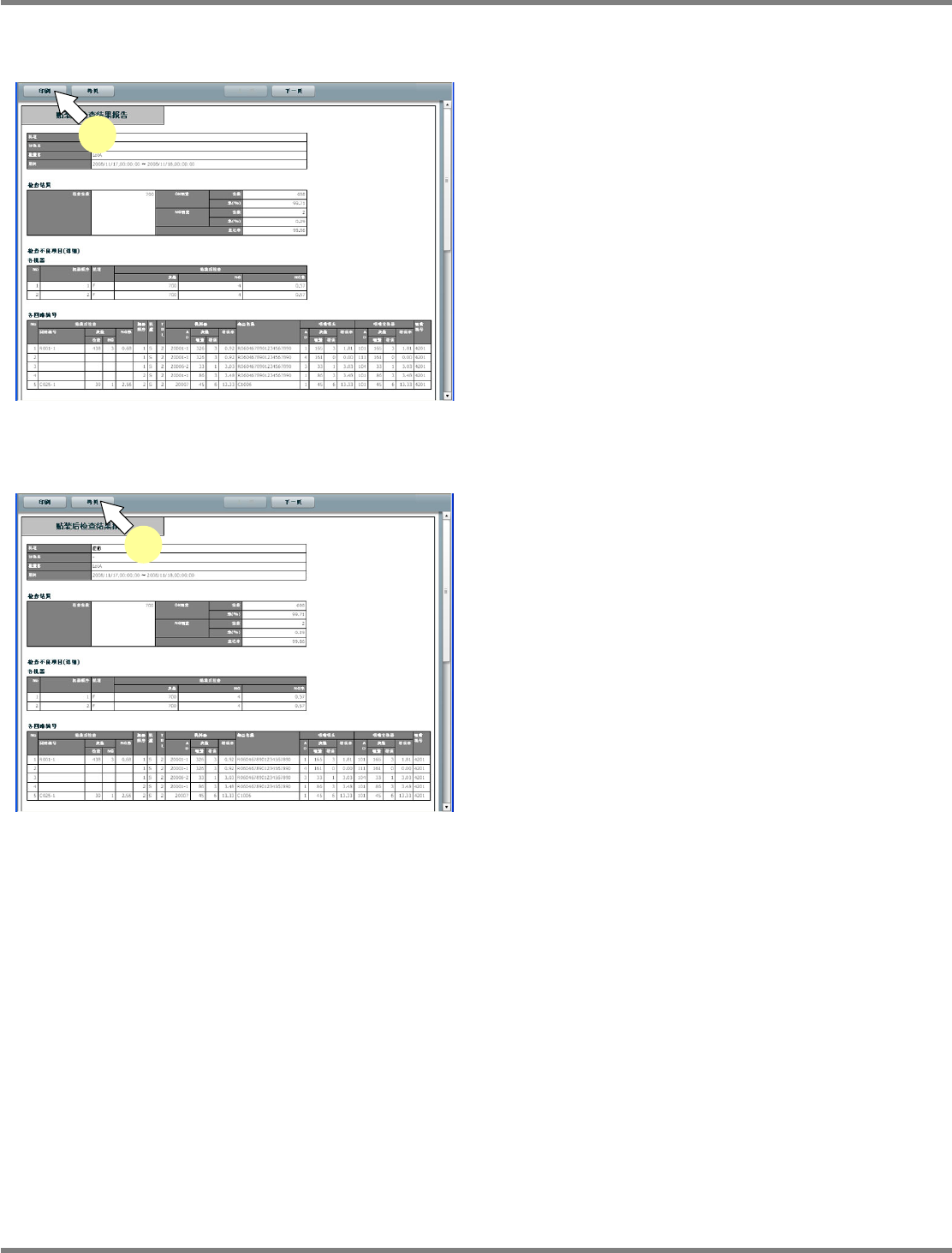 按每个回路编号分开显示检查结果数据。