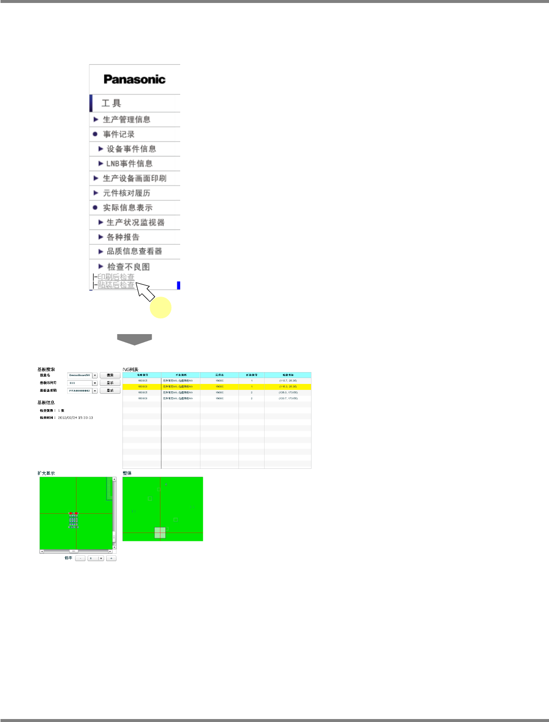将显示贴装后检查不良图。关于显示内容、操