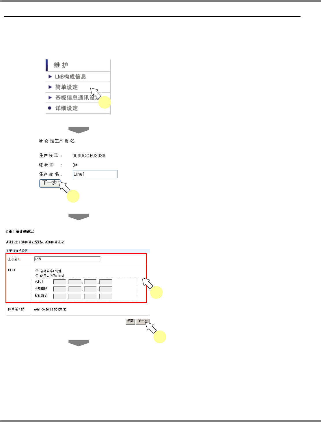 NPM / AM LNB 4.2 简单设定 EJM5DC-MB-04L-0 4 Page 4-7 显示出 < 上一级系统设定 > 画面。 4 输入数据编制系统、 PanaCIM 设定、 TR200 设定、 SPC200 设定、 品质信息 数据库后、 PT200 、点击 [ 下一步 ] 。 数据编制系统、 PanaCIM 、 TR200 、 SPC200 、 PT200 是松下生产科技株式会社的商品 名称。 为了使…