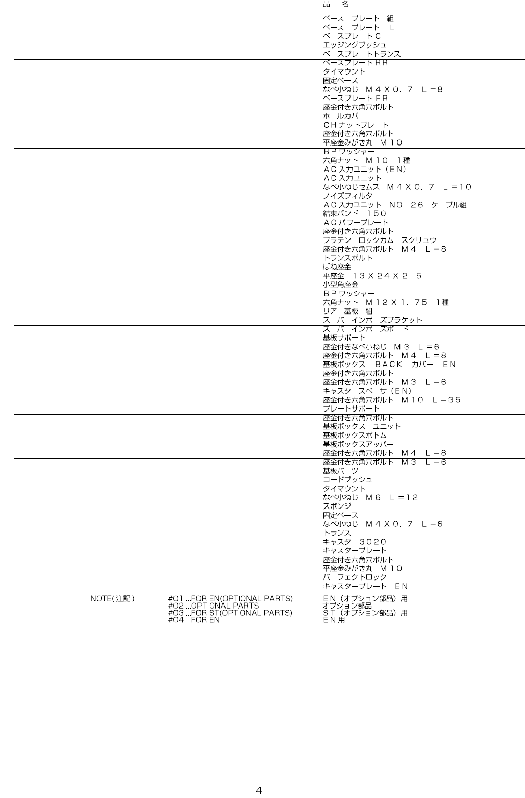 REF.NO NOTE PART NO D E S C R I P T I O N Qty