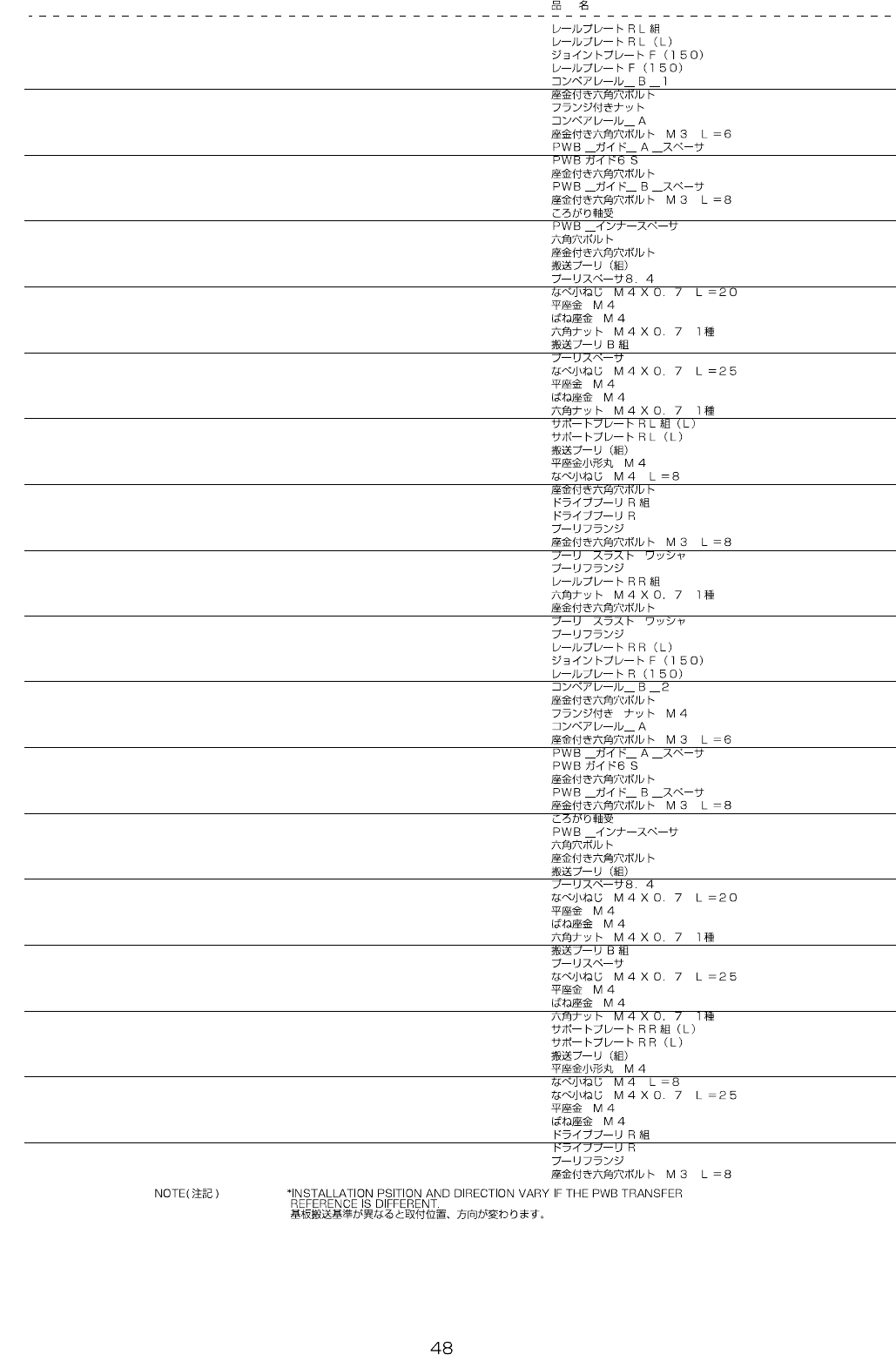 REF.NO NOTE PART NO D E S C R I P T I O N Qty