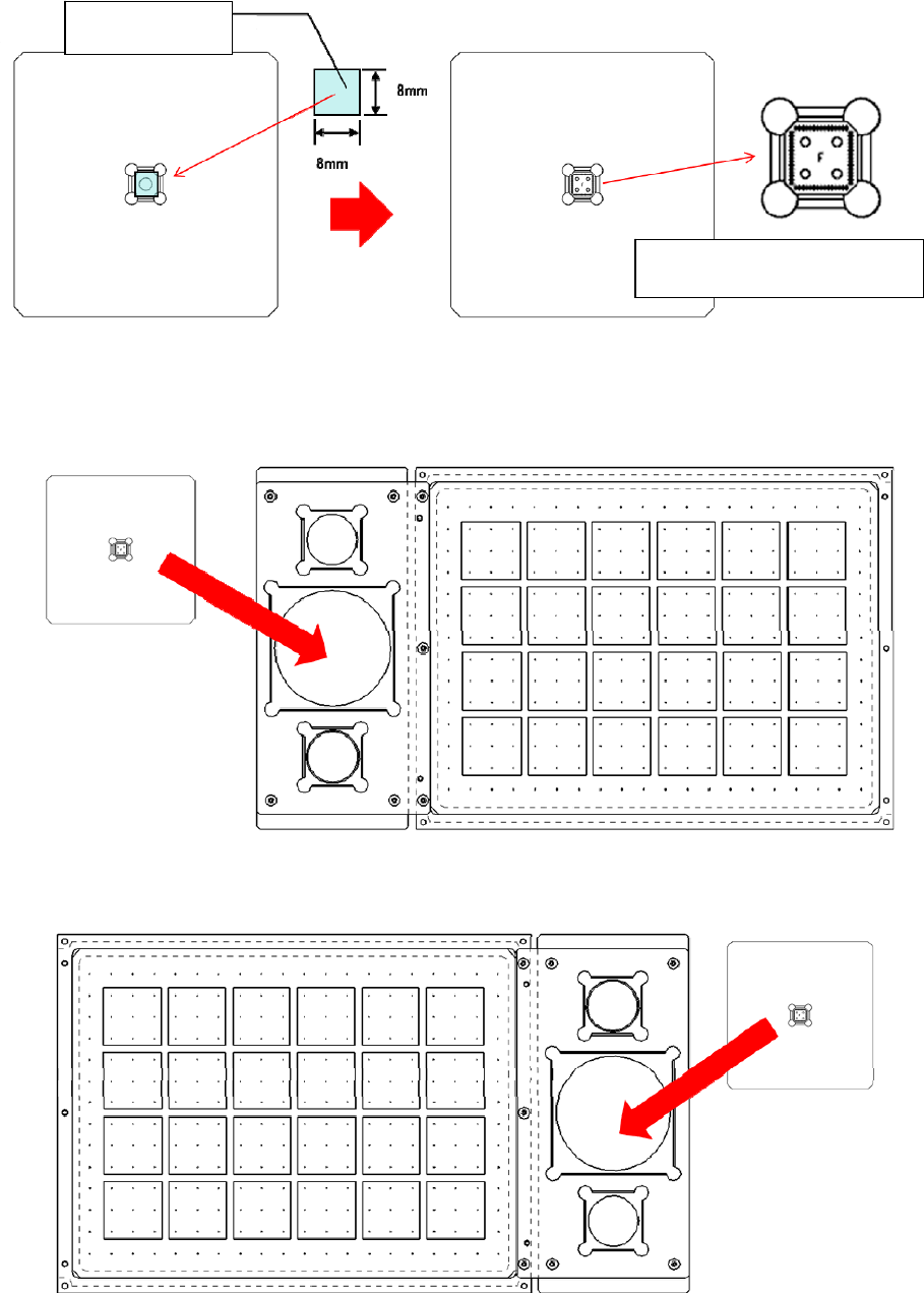 FCS 使用说明书 11 (6) 使用模具时的注意事项 使用各个模具时,请注意以下事项。 粘贴标签时的注意事项 如玻璃面上有脏污,请用镜片布等将其擦除。 黏贴时不要有气泡、灰尘、垃圾进入。 硅胶片要贴在图形中央部分。 粘贴标签 属于损耗品。当受到污染或剥离时,请更换之。 使用 FCS 模具芯片 B 时的注意事项 赤手触摸会导致其表面污染,从而生锈。 如零件污染,会导致发生误差。请擦拭干净之后再使用。 如有缺角…