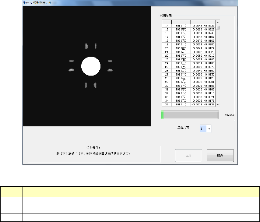 按下[FCS 生产模式]-[执行调整生产]按钮,显示 [识别贴片元件] 画面时,自动开始识别动作,显 示 下图所示