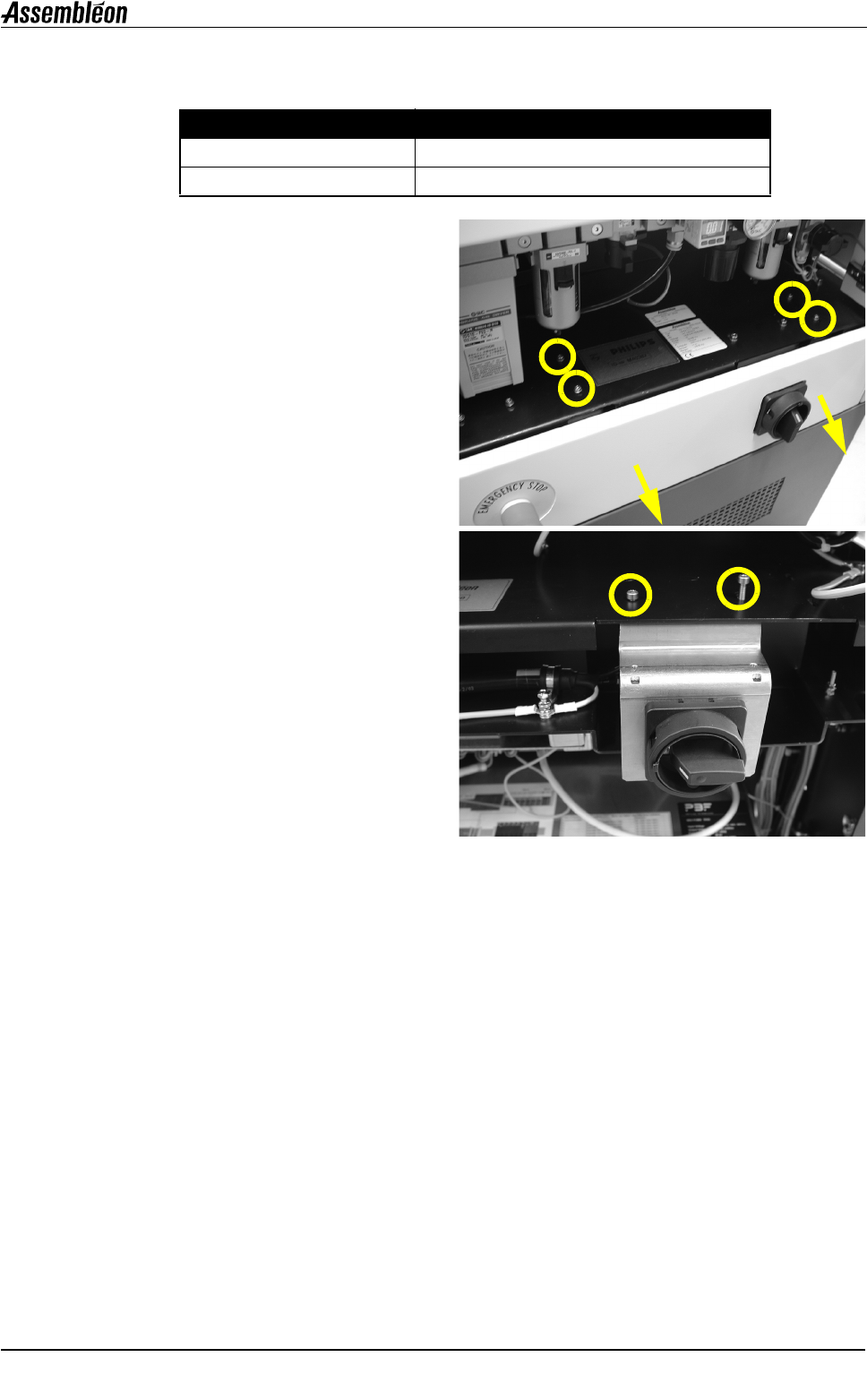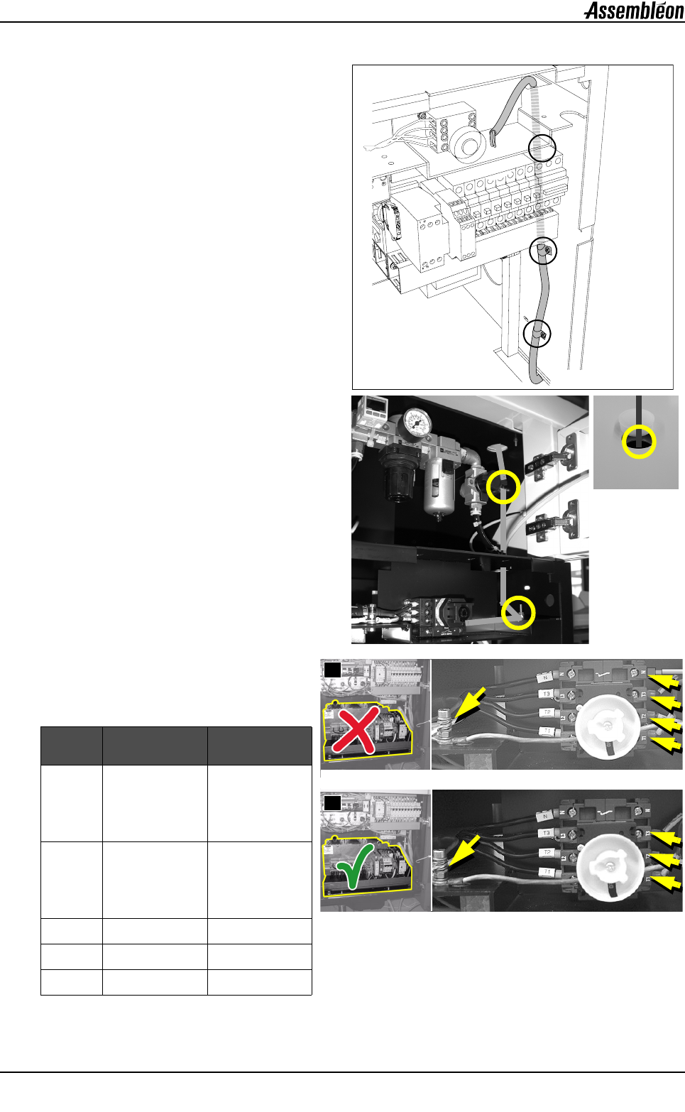 4022 593 52152 安装手册 08.02 AX-301/5 01, AX-3/5 37 ch04.fm 第 4 章 ■ 接地 2. 卸下面板 • 请务必确认在工厂取下相 关的保险丝后机器 的电源会关闭。 • 打开背面左上角的门。 • 卸下 4 个螺栓,然后将面板放置一边。 3. 卸下主电源开关组件 • 卸下 2 个螺栓,然后拿下组件 (只有当主 电源开关处于 “ 关闭” 位置时才可进行此 操作) 。 4. 布置电源电缆 • 将…
