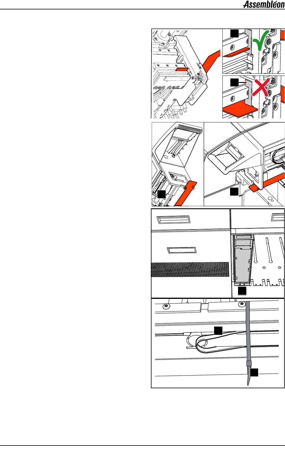 • 松弛 4 根传送带(1),然后将它们安装(2)