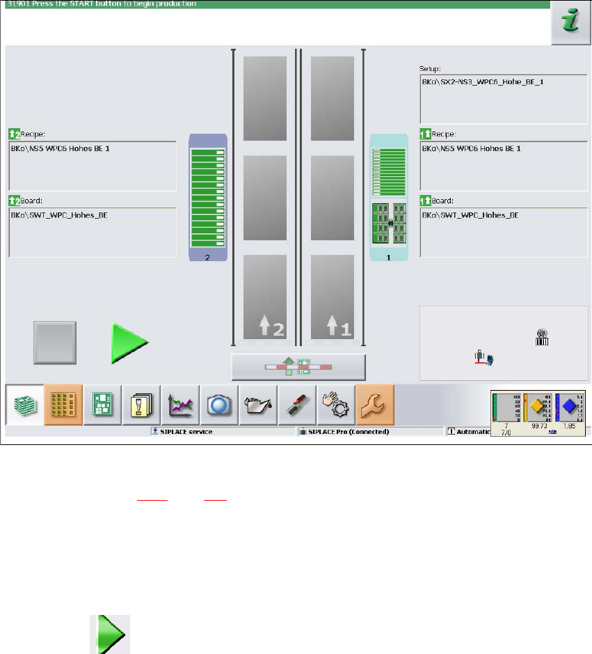 Fig. 5.3 - 1 Visning "Produktion" efter indlæsning af stationssoftwaren (SIPLACEX4i som eksempel)