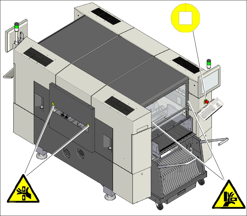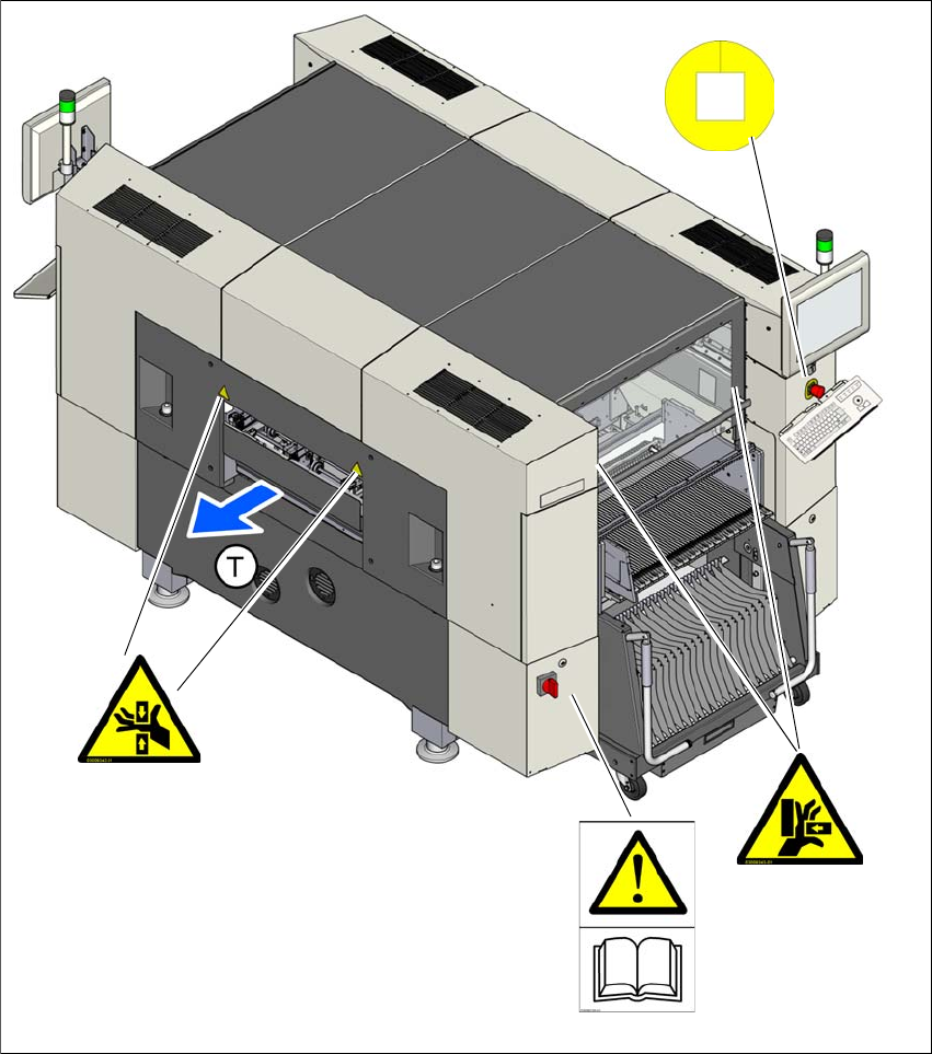 2 Drifts sikkerhed Betjeningsvejledning SIPLACE SX1/SX2 2.2 Advarselsskilte Fra softwareversion SR.706.1 SP1 Udgave 10/2014 DA 40 Fig. 2.2 - 2 Advarselsskilte W201, W203, W204 og W210 på automaten - del 2 Pos. W201, arti…