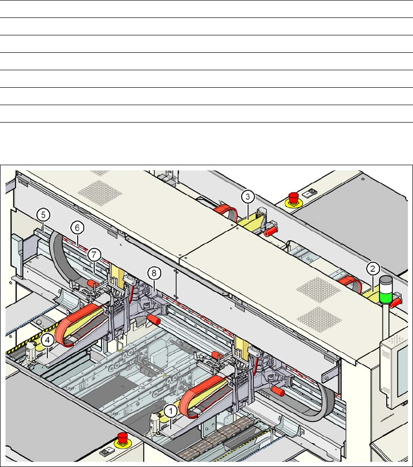 3 贴片机的技术数据 用户手册 SIPLACE D4i 3.6 悬臂系统 源自软件版本 SR.605.03 SP2 2012 年 10 月 中文版 102 3.6.3 X 轴的技术数据 3 3.6.4 Y 轴的结构 3 图 3.6 - 3 Y 轴的结构 驱动装置 三相交流伺服马达 / 齿形皮带 最大速度 2.5 m/s 移动行程 375 mm 距离测量系统 金属线性光栅尺 测量长度 400 mm 光栅尺长度 420 mm 分辨率 1 µ…