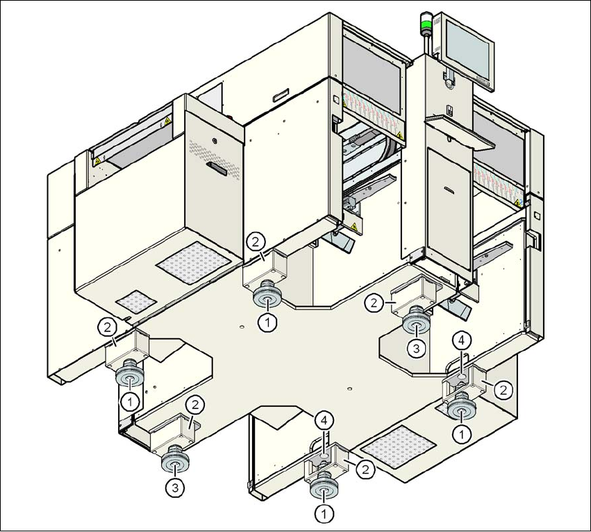 →使用 M24 螺母调节中部贴片机支脚的高度 (图 4.3 - 2