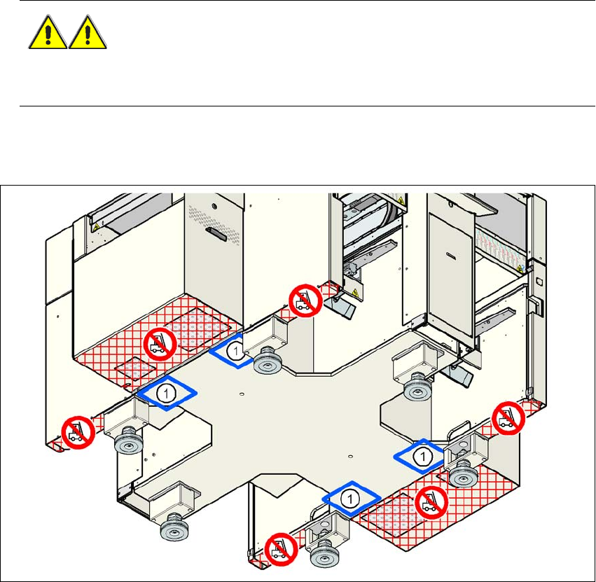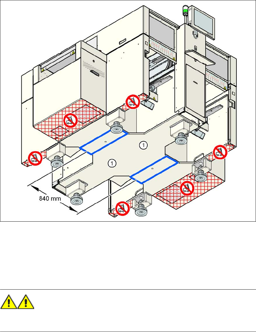 用户手册 SIPLACE D4i 4 安装和试运行 源自软件版本 SR.605.03 SP2 2012 年 10 月 中文版 4.3 安装贴片机 171 4.3.8.3 根据生产线校准贴片机 → 用叉车将贴片机定位在生产线 上的一个空位置上。 警告 4 慢慢地降低贴片机。应安排另一个 人注意贴片机的下部,确保 贴片机的支脚同时触地。如果 贴片机一侧的支脚很重地撞到地面 上,固定装置会受损。 4.3.8.4 使用气垫运输系统校准贴片机 4…